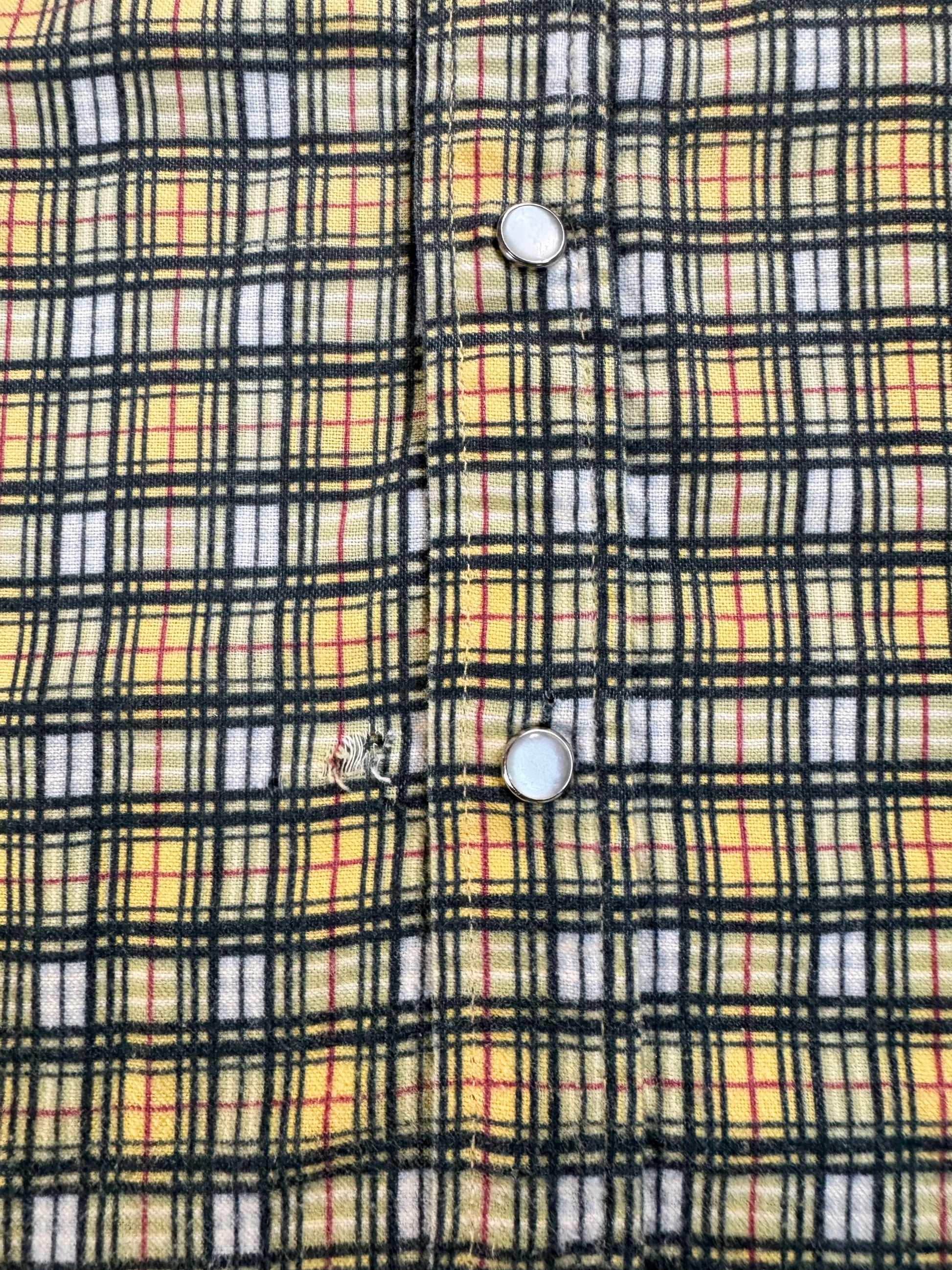 Vintage 1980s Haband Yellow, Green & Red Plaid Pearl Snap Buttoned Shirt.