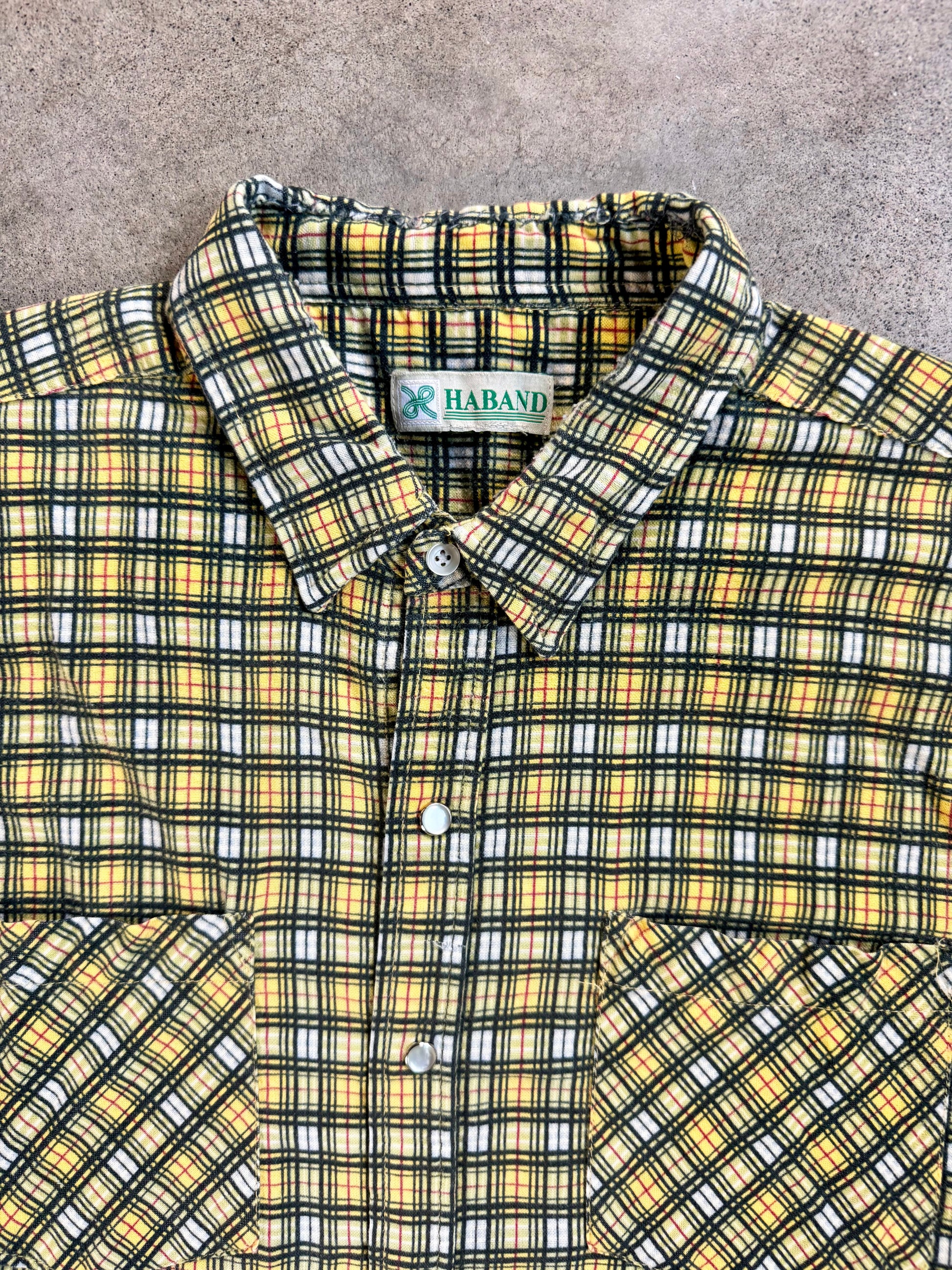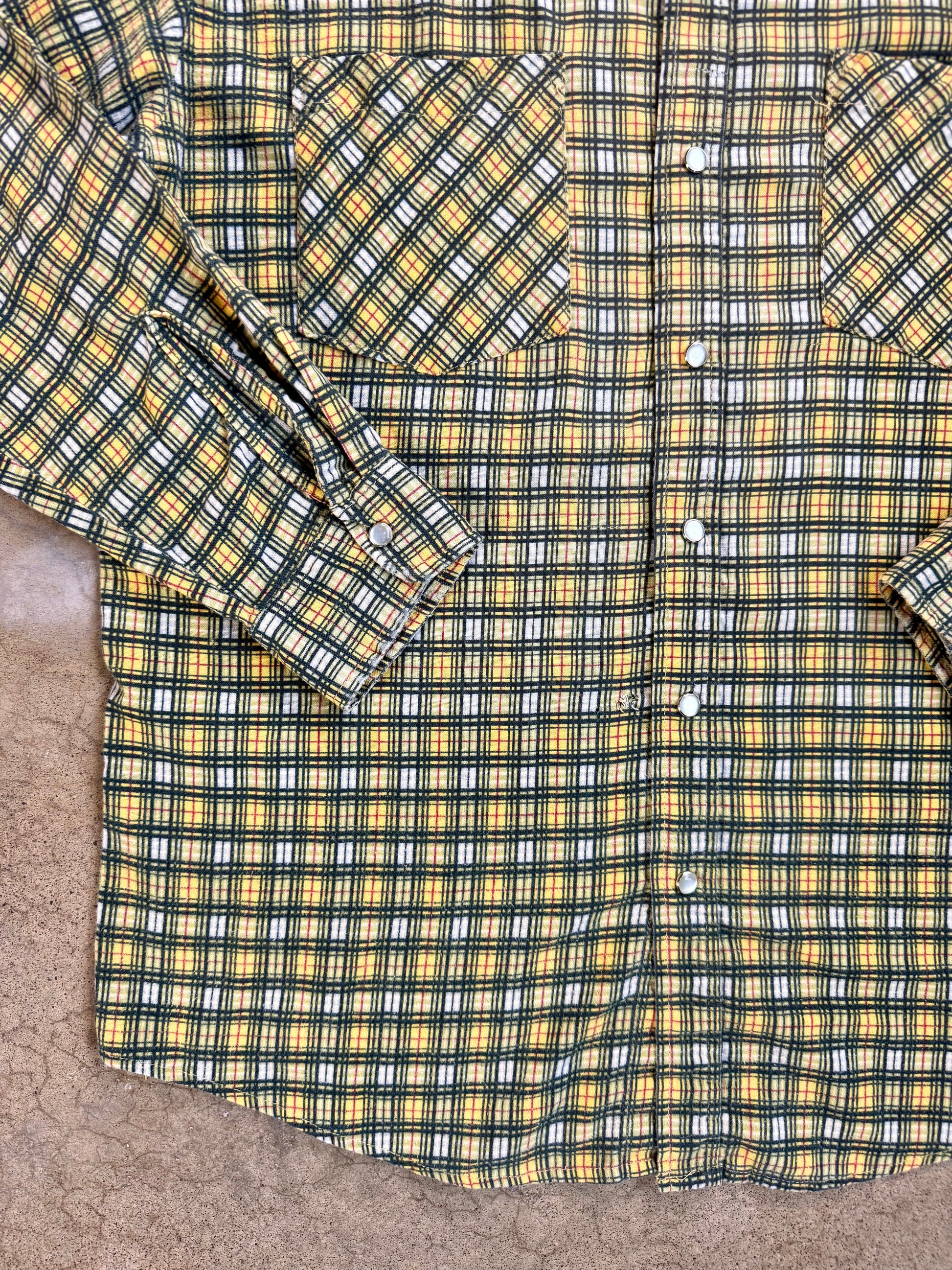 Vintage 1980s Haband Yellow Plaid Pearl Snap Shirt | Large