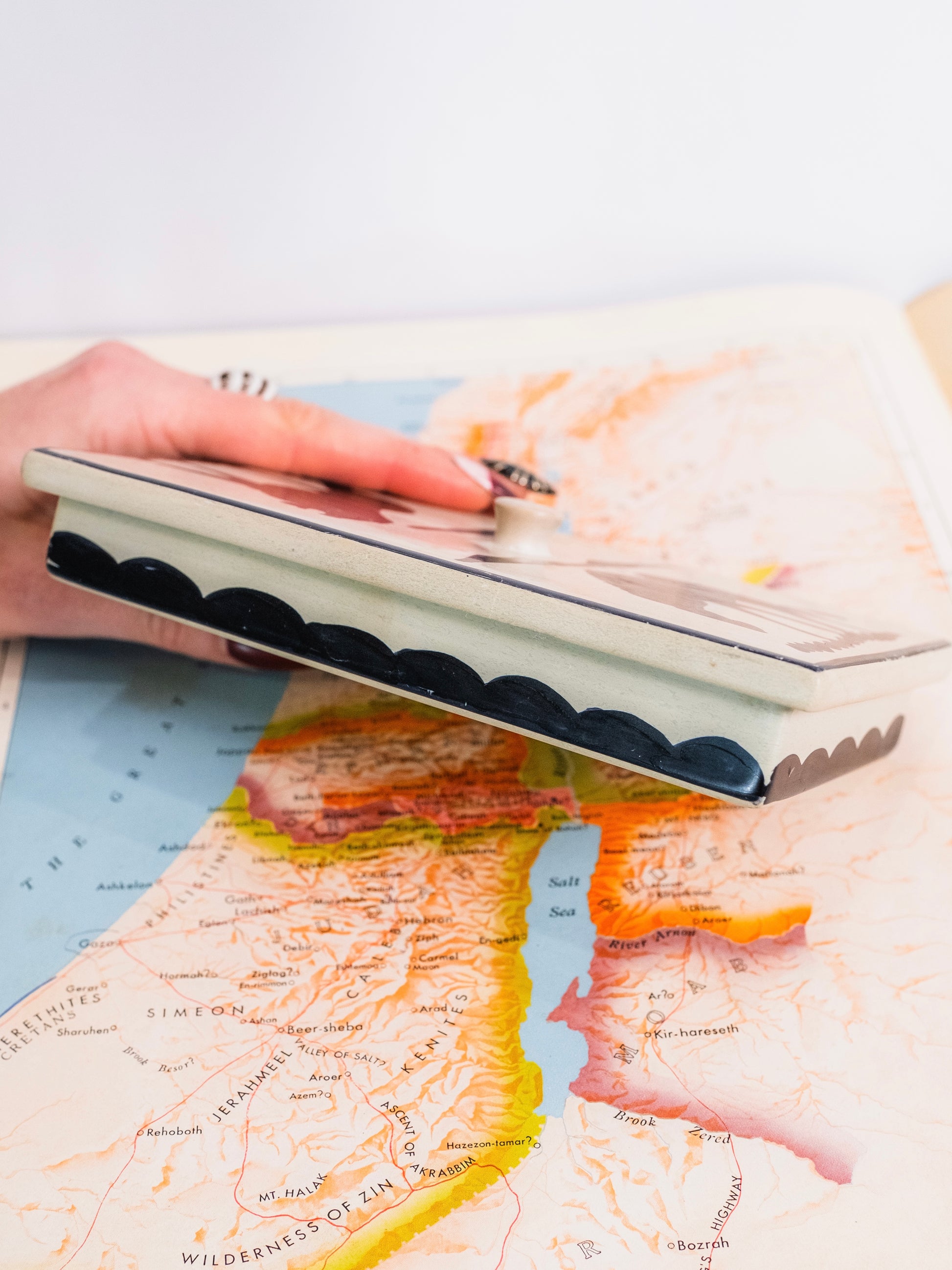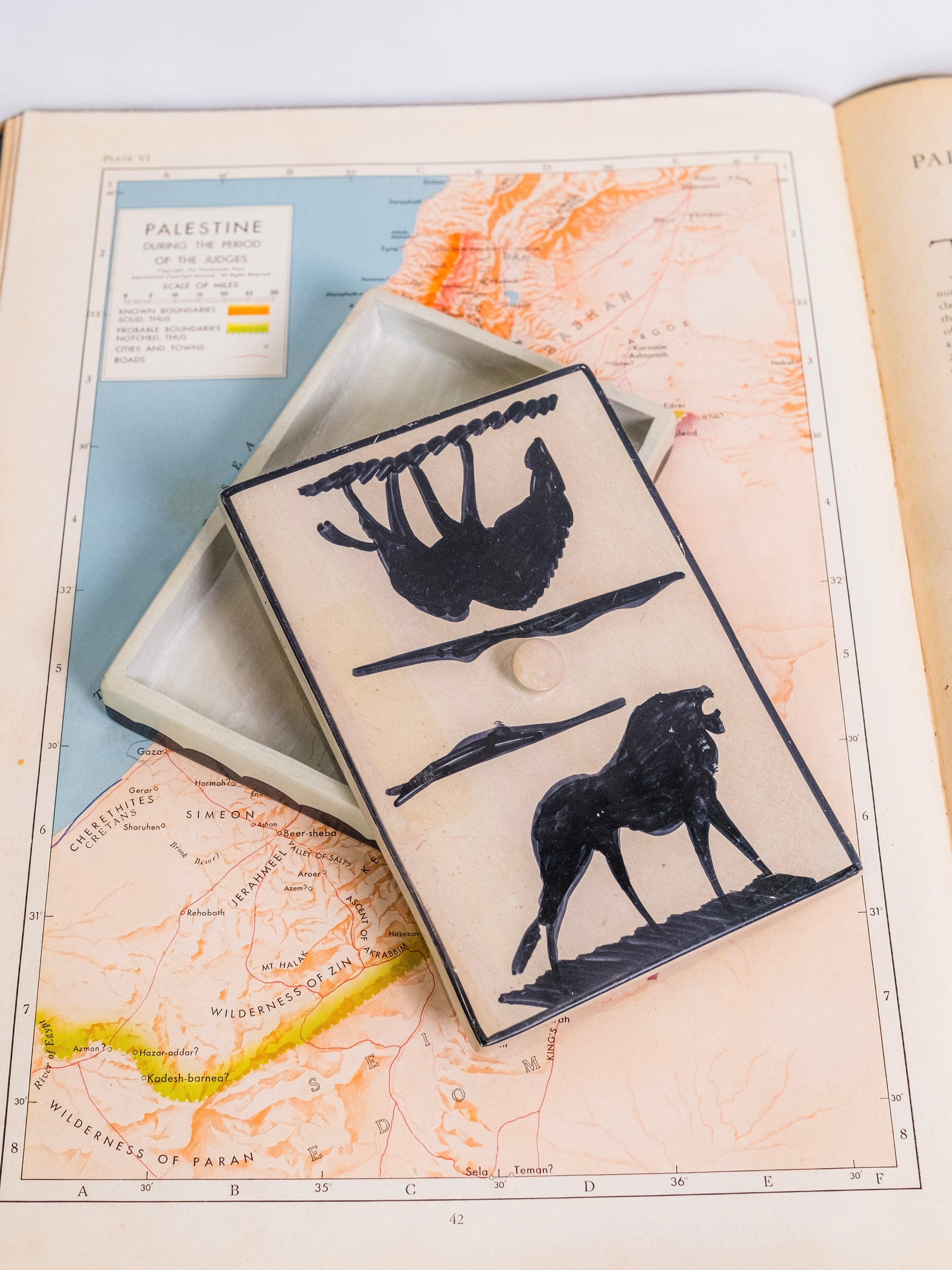 Vintage Hand-Painted “Lion & Prey” Stone Card Holder Box.
