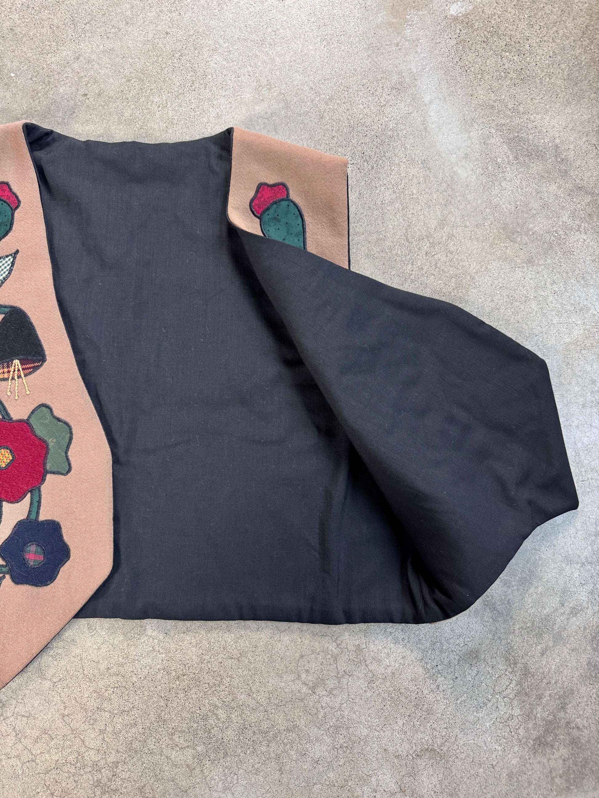 Vintage 1980s Handmade Brown Floral Patched Vest. Open vest - no closures.