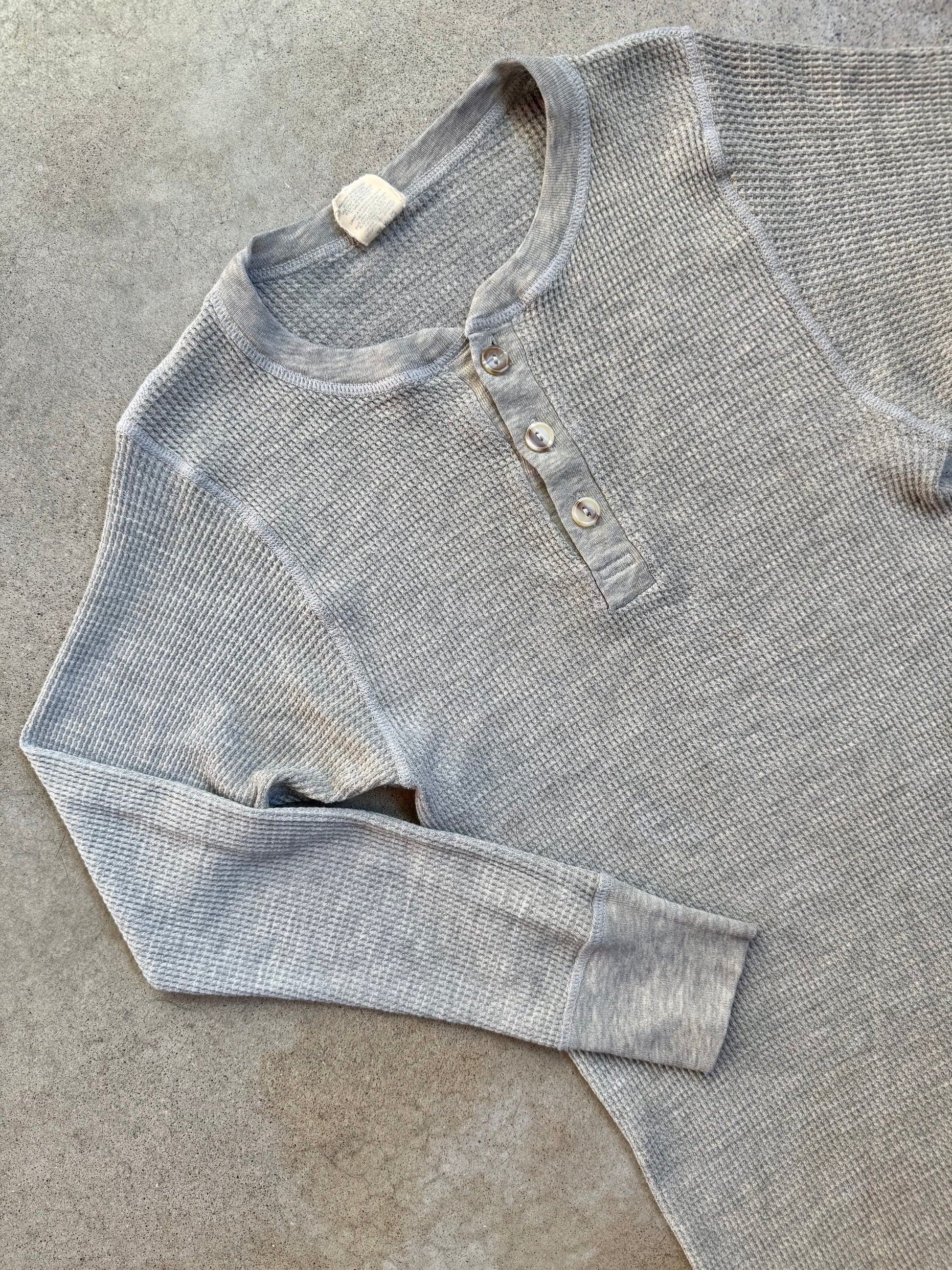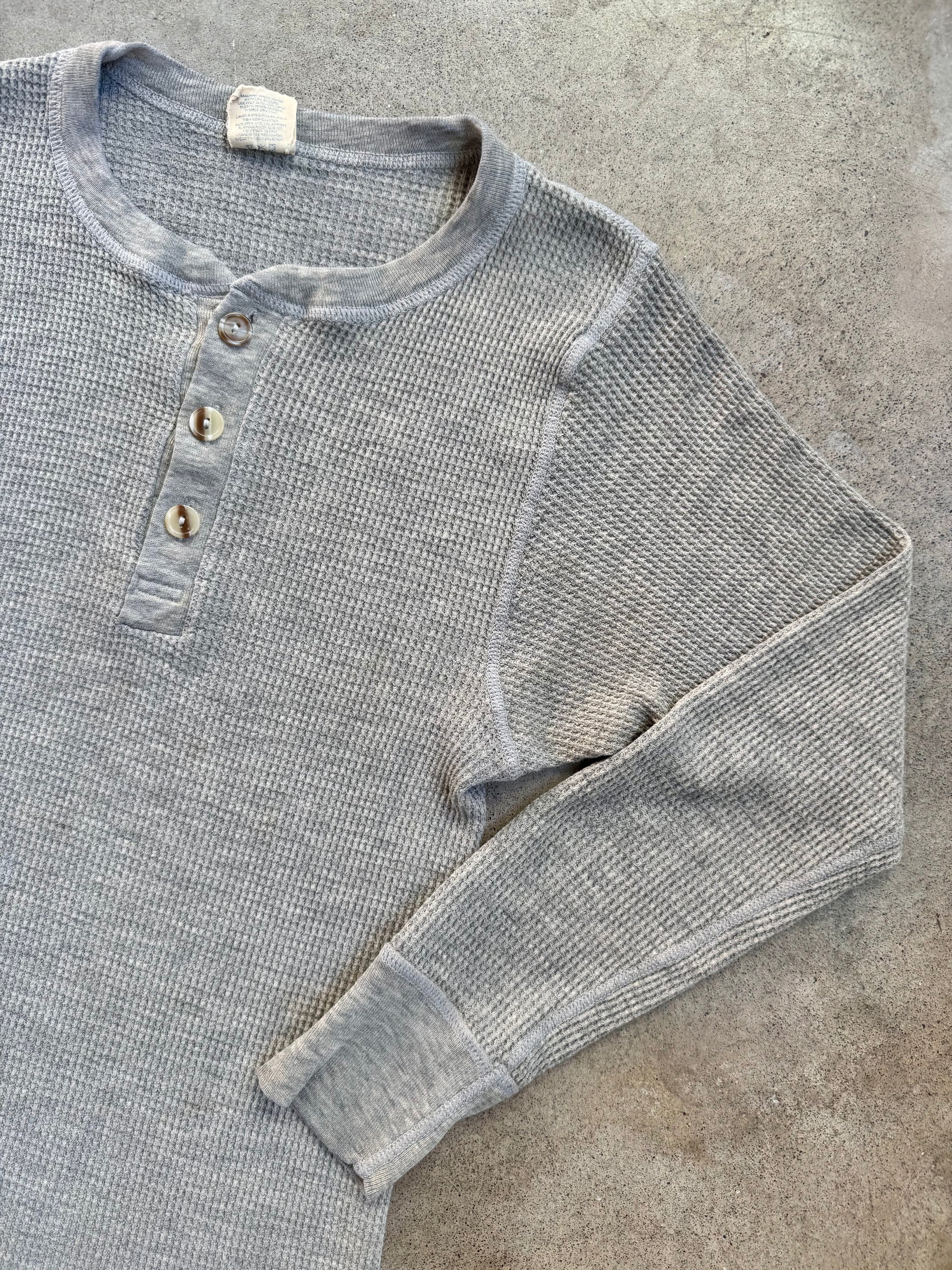 Vintage 1980s JE Morgan Grey Henley Waffle Thermal | Large