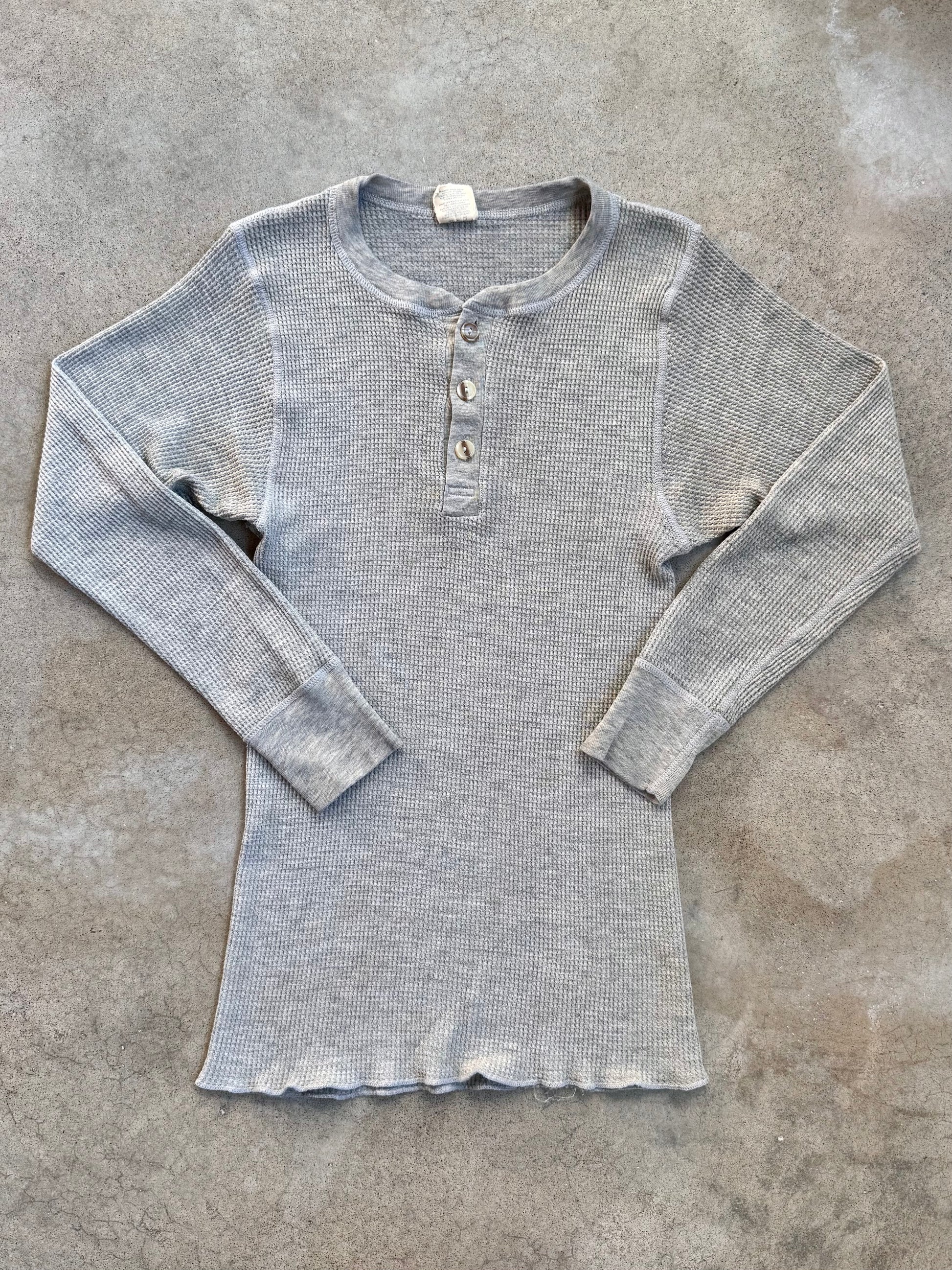 Vintage 1980s JE Morgan Long Johns Grey Henley Button Waffle Knit Thermal Shirt.