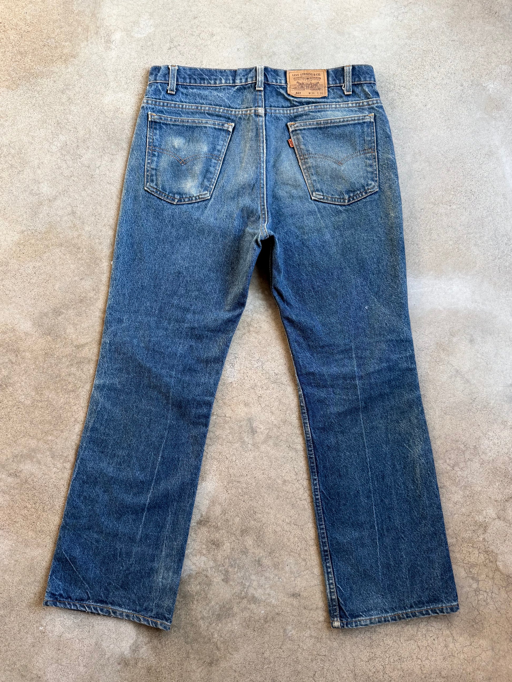 Vintage 1980s Levi's Orange Tab 517 Bootcut Faded Dark Wash Jeans | 36x30