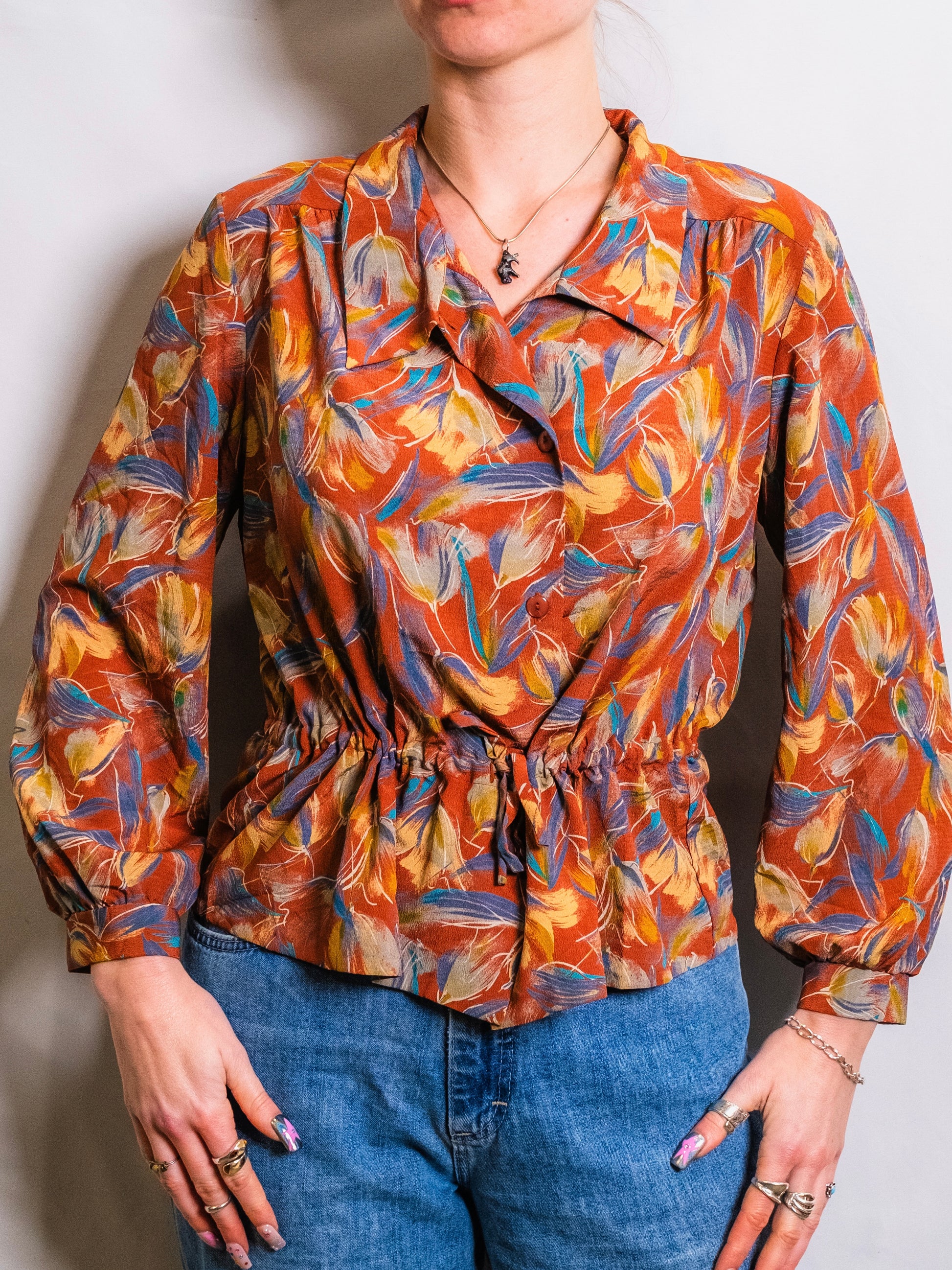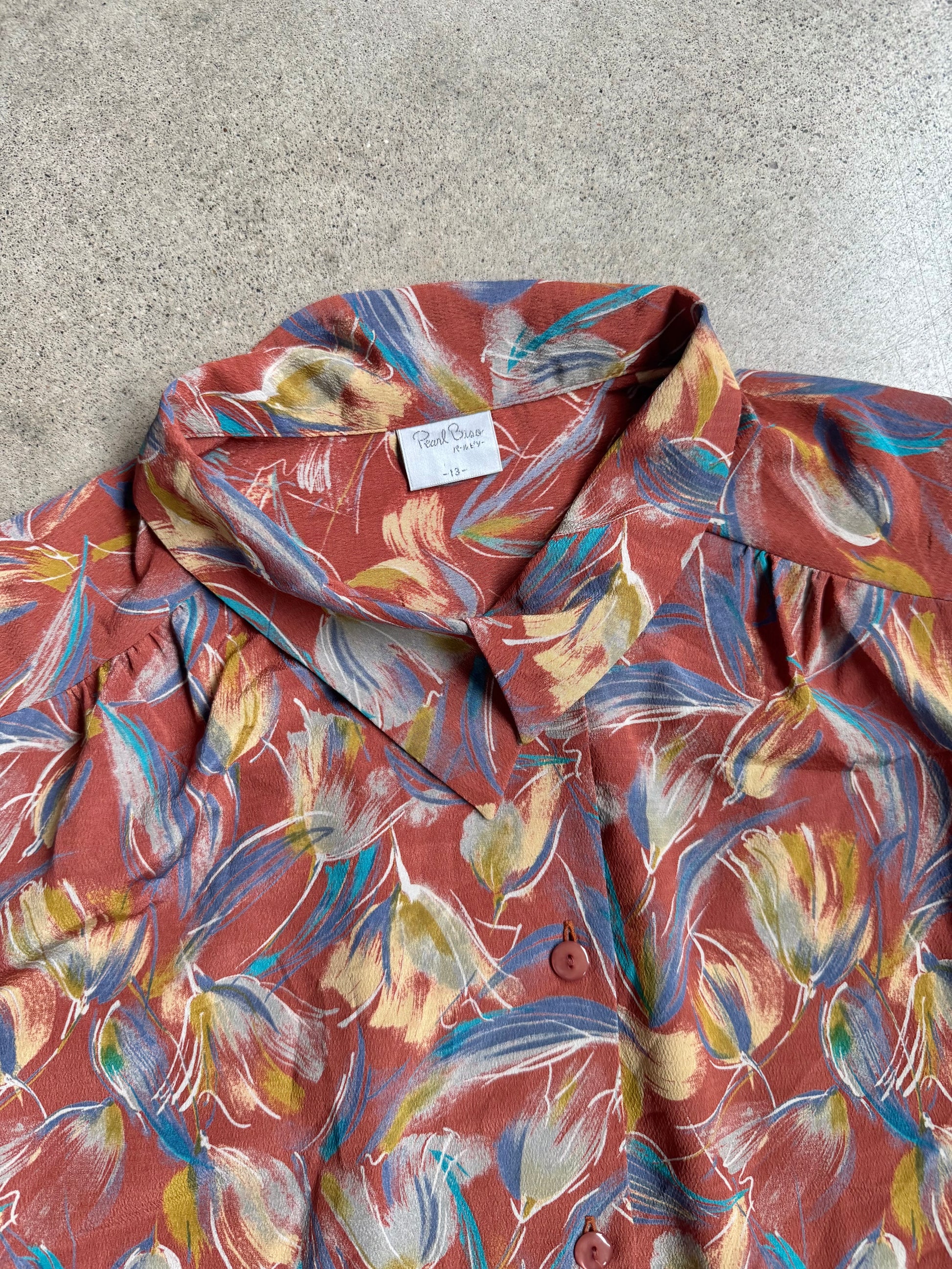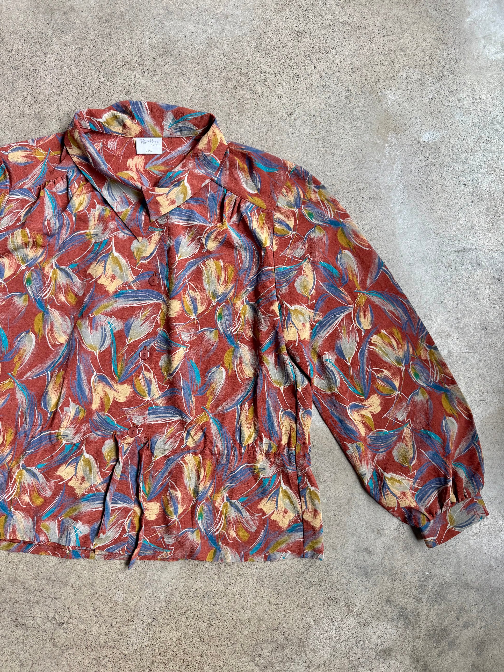 Vintage 1980s Pearl Biso Floral Print Tie-Waist Blouse.