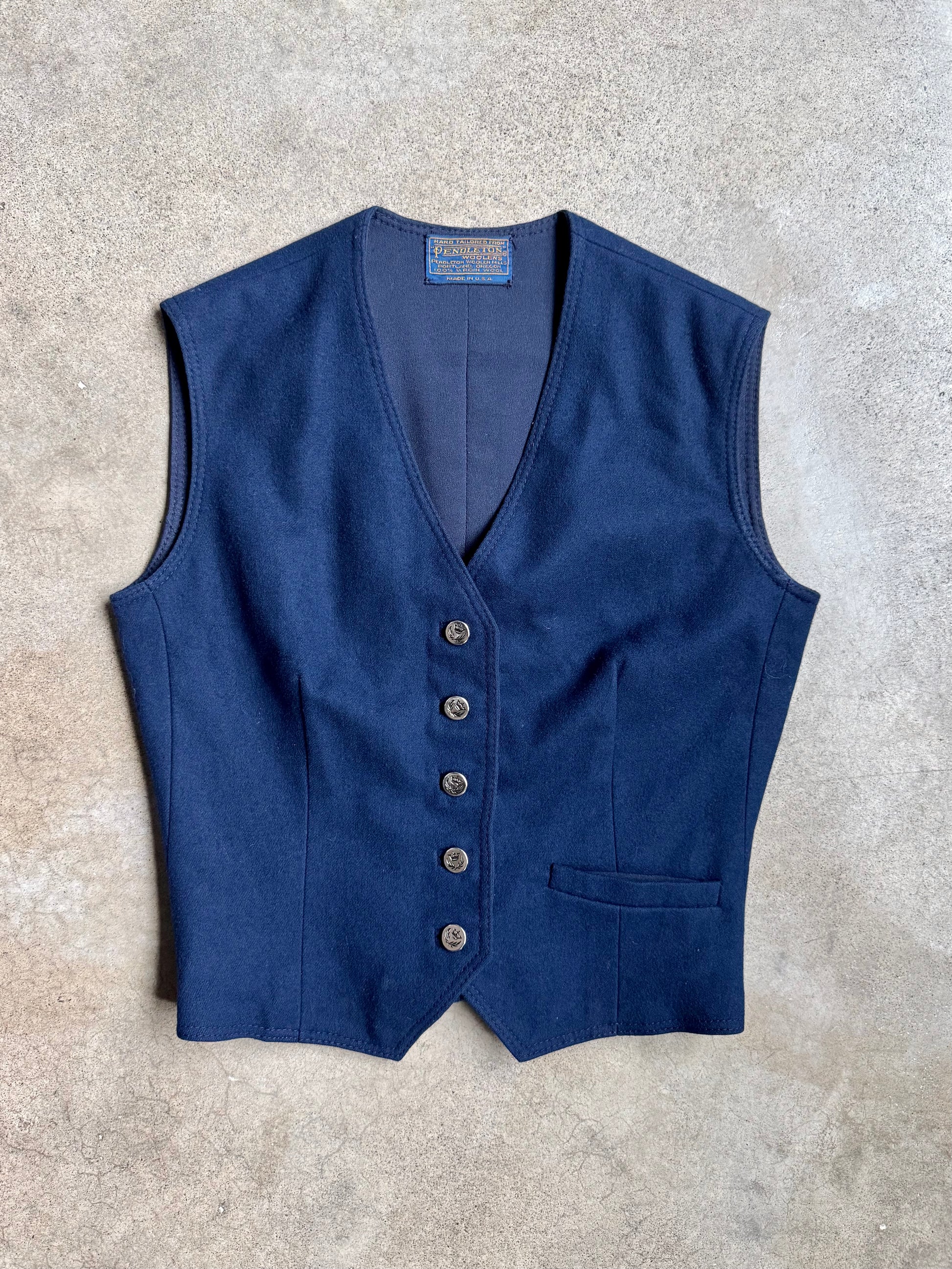 Vintage Hand-Tailored Pendleton Navy Blue Wool Vest | XS/S