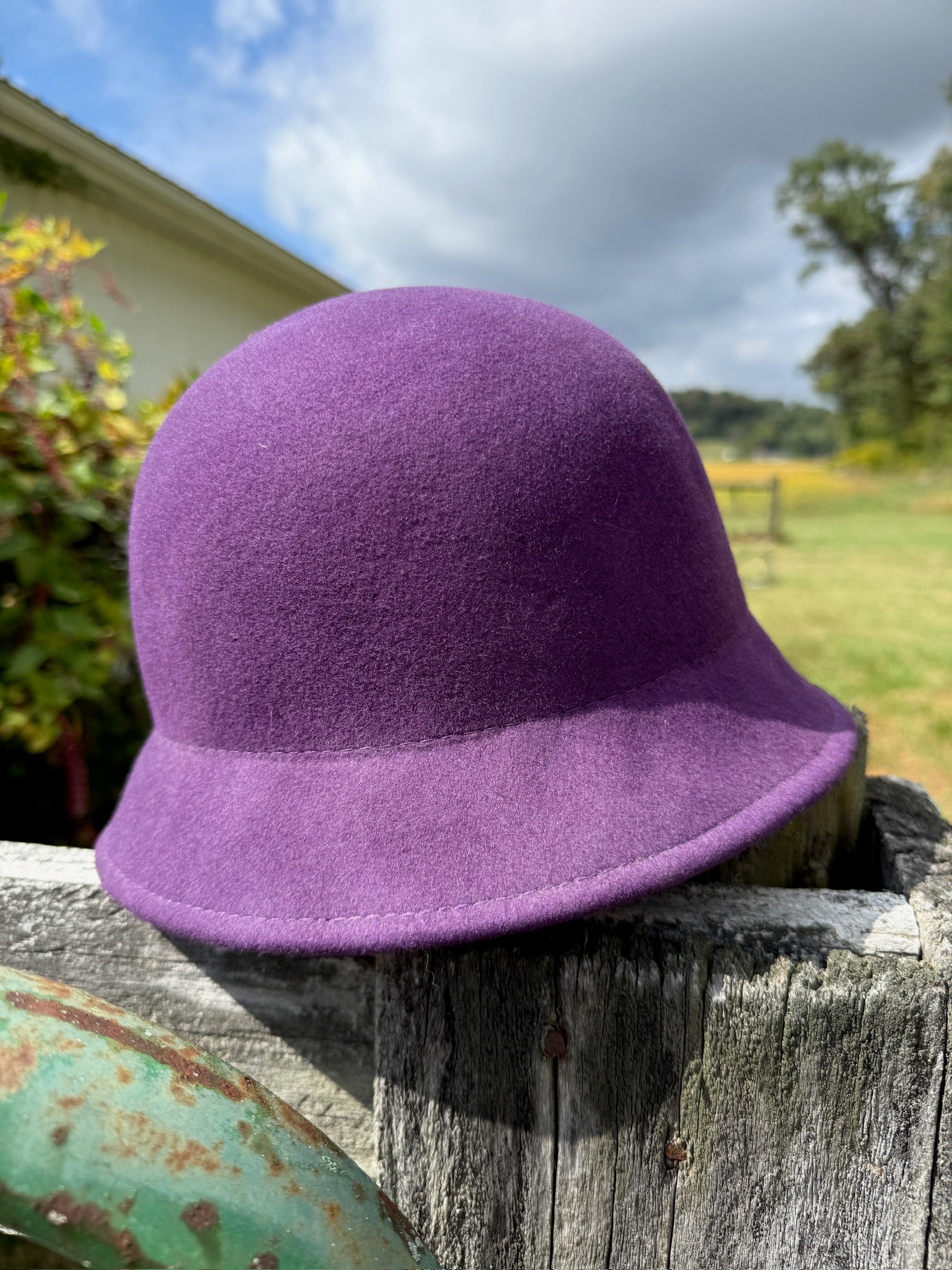 Vintage 1980s Purple Wool Cloche Bow Hat
