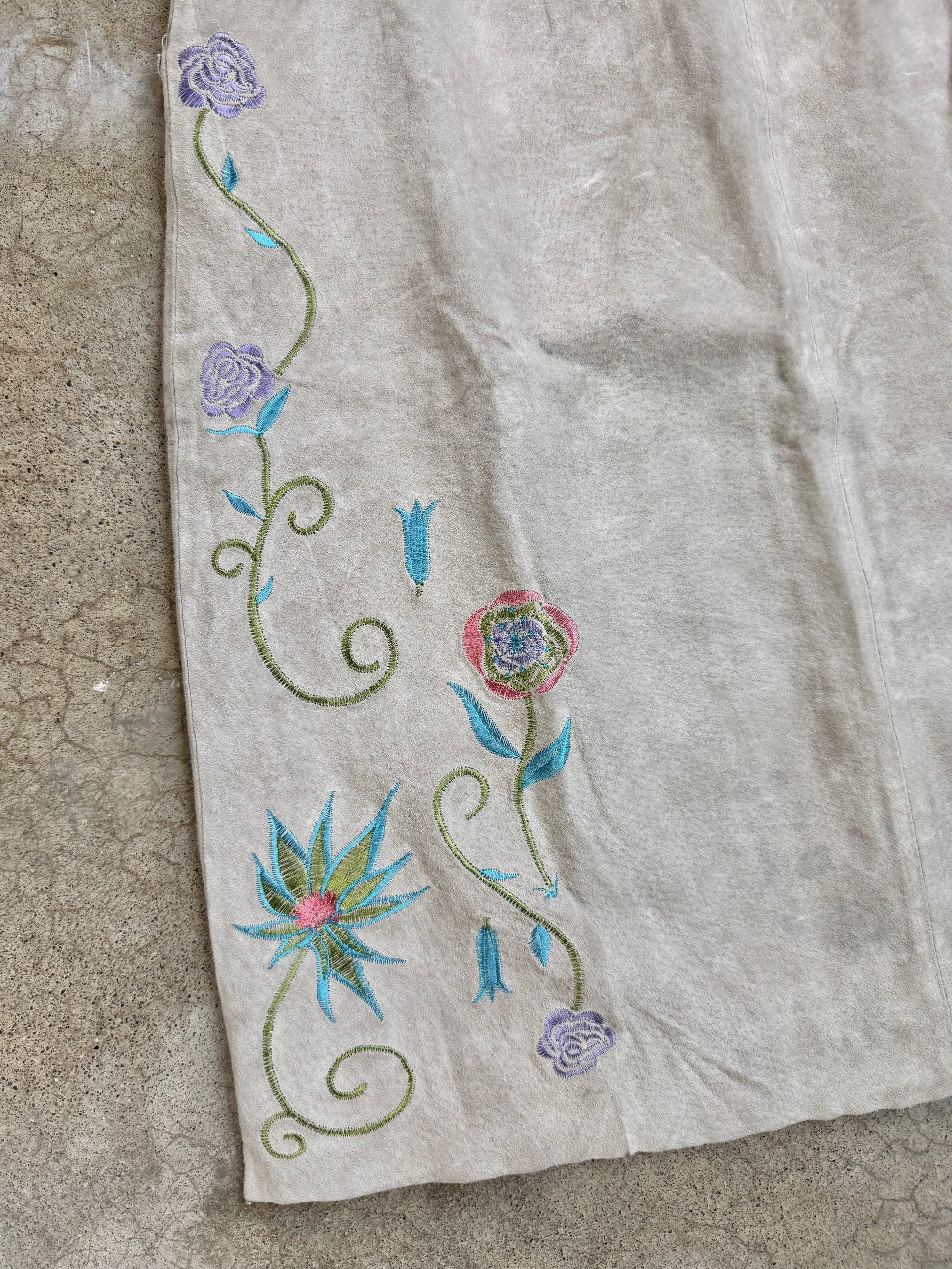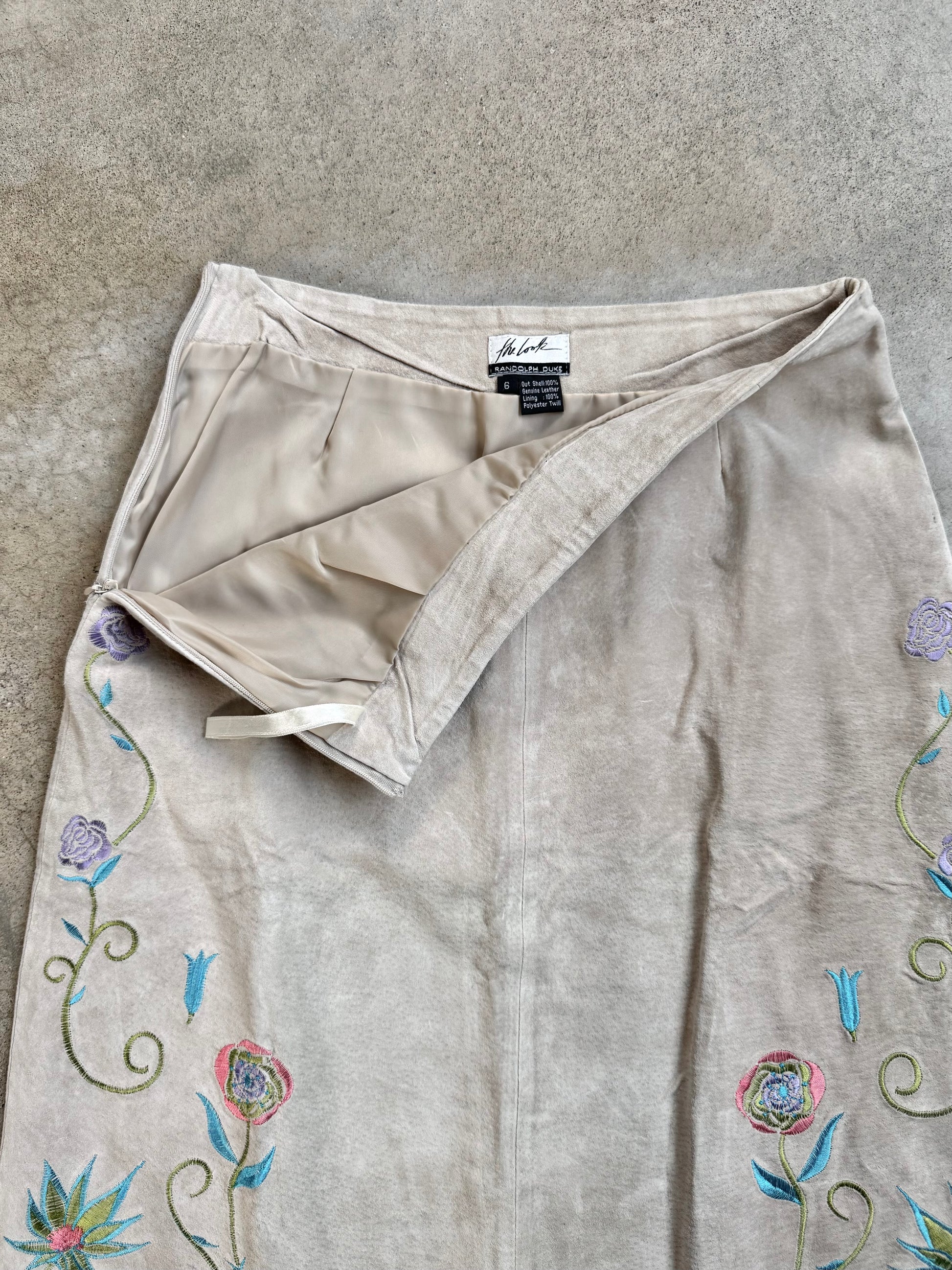Vintage 1990s Randolph Duke Floral Embroidered Suede Leather Skirt | Waist 27”