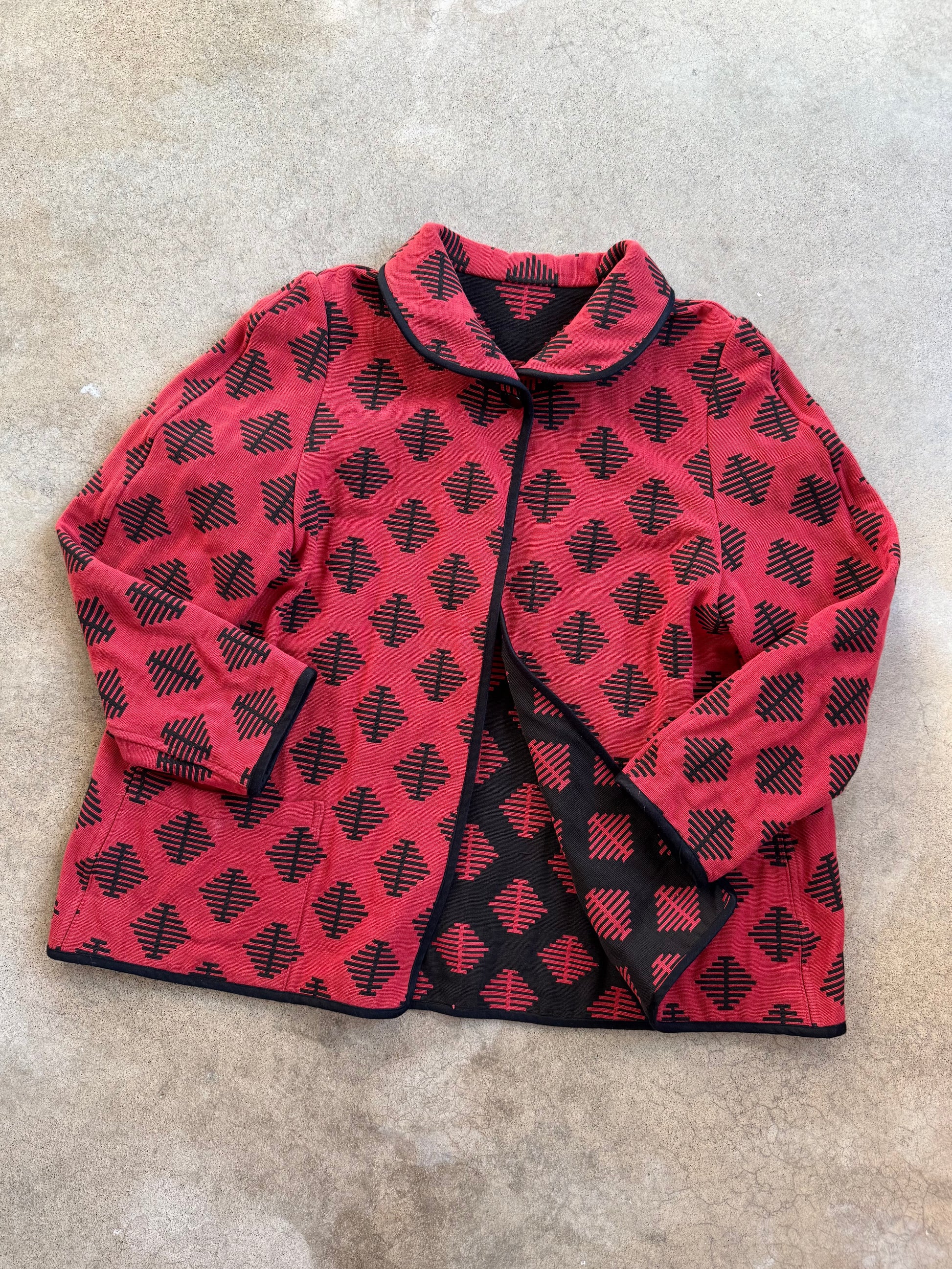 Vintage 1980s Red & Black Patterned Woven Tapestry-Style Reversible Jacket.