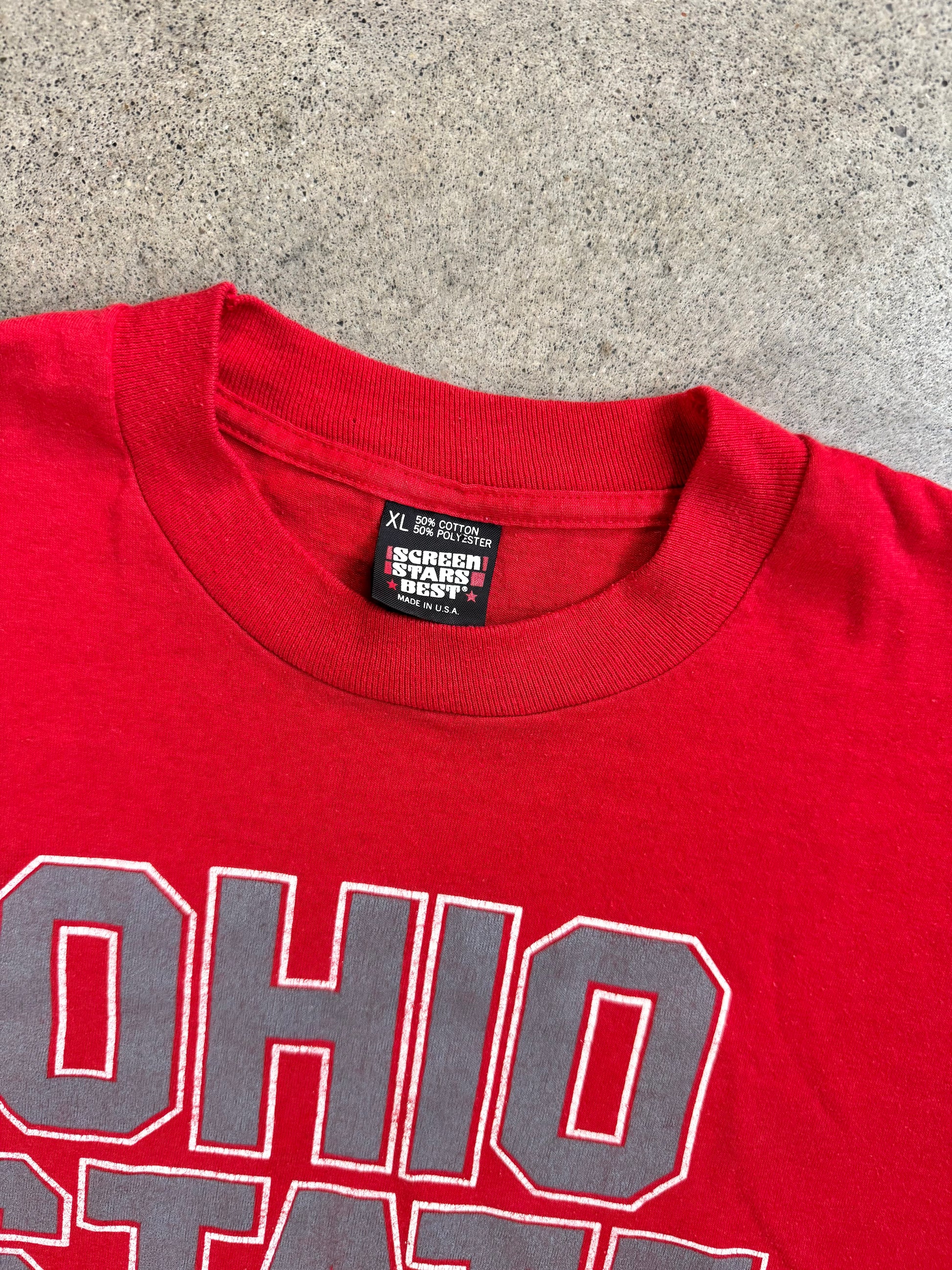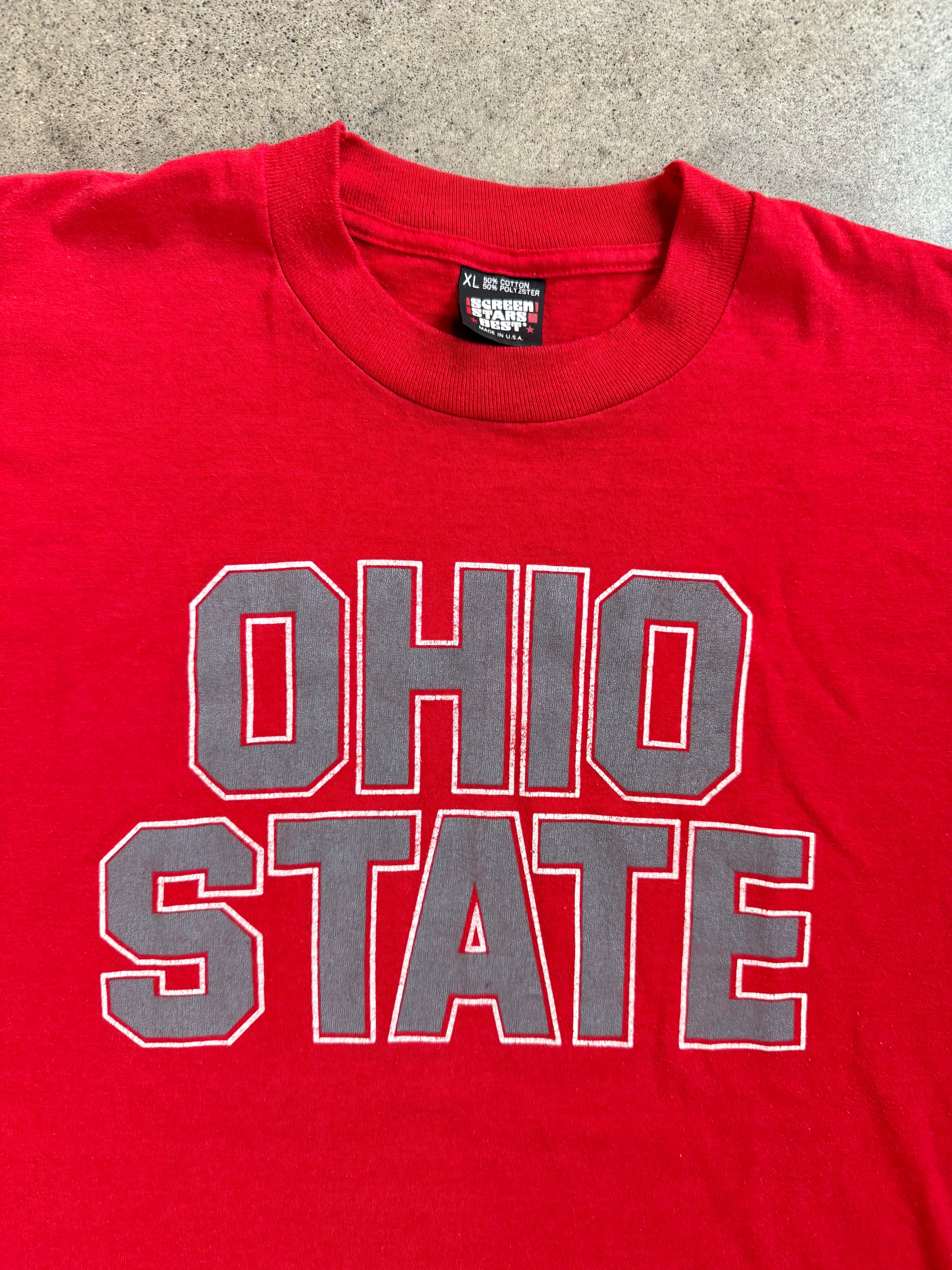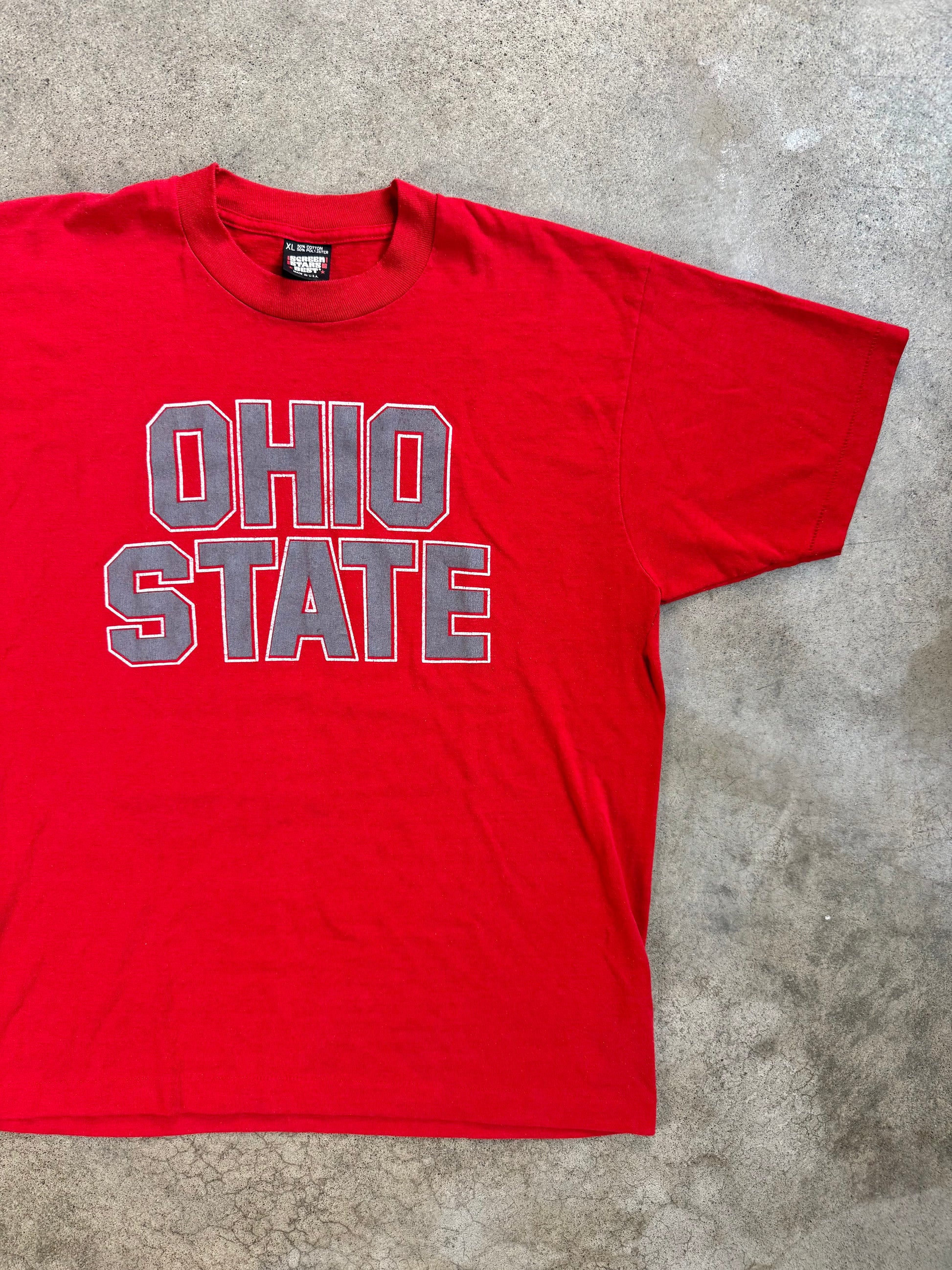 Vintage 1980s Screen Stars Red Ohio State Graphic Tee | XL