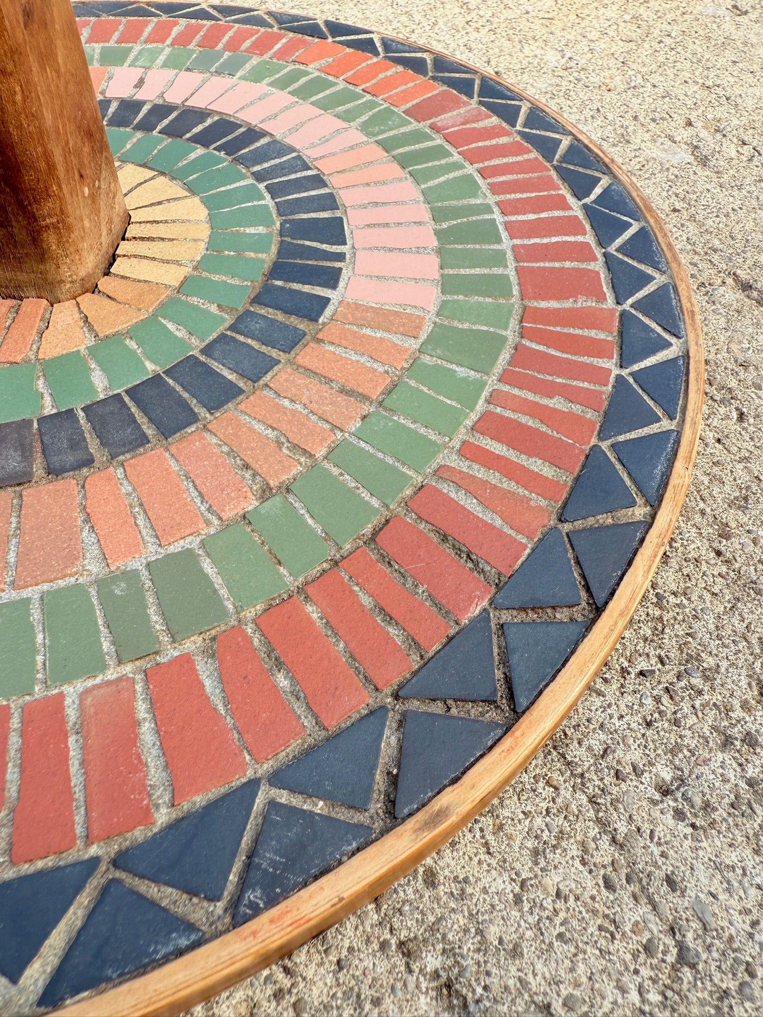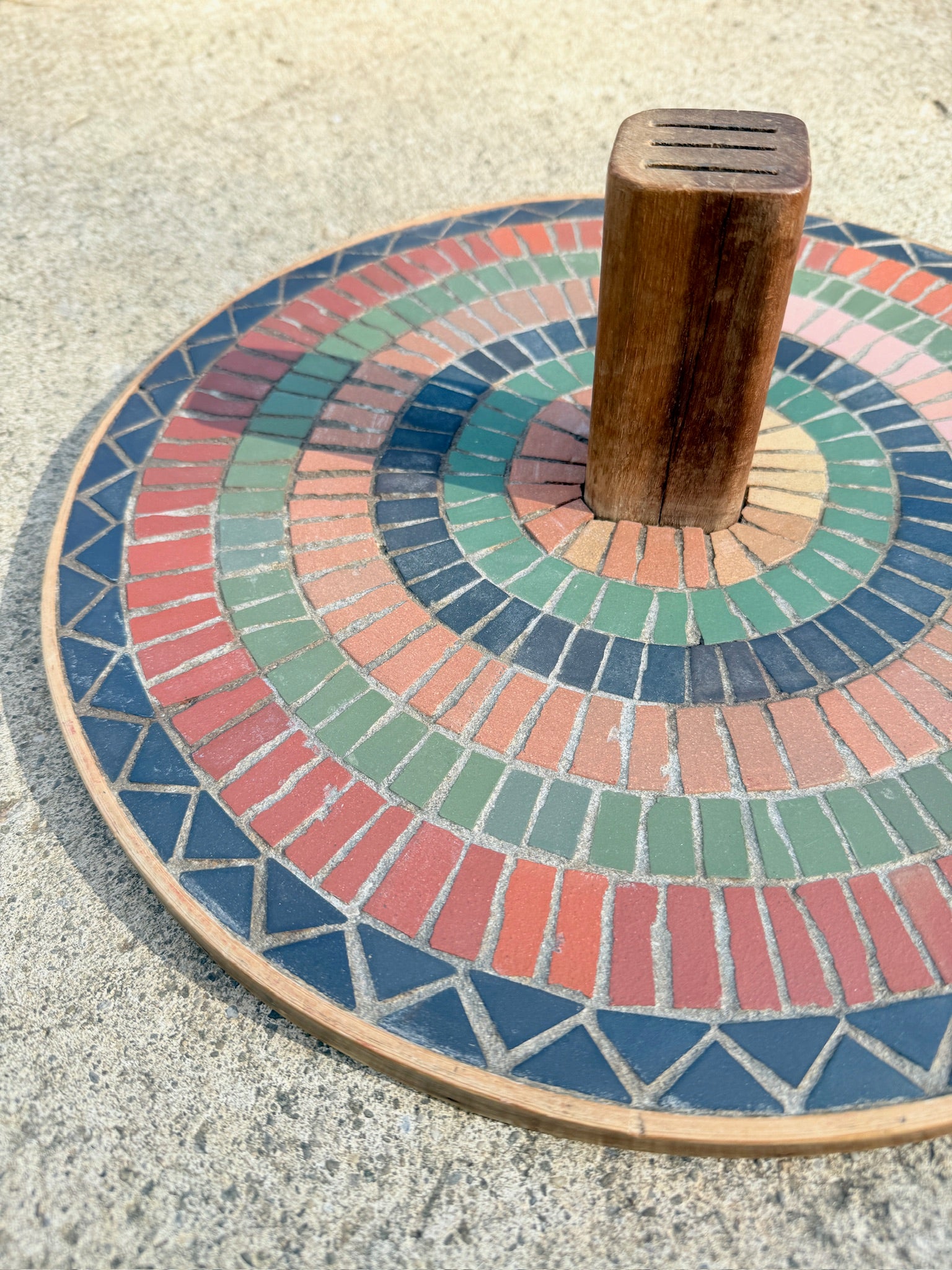Vintage 1980s Round Tiled Cheese Charcuterie Platter w/ Knife Holder.
