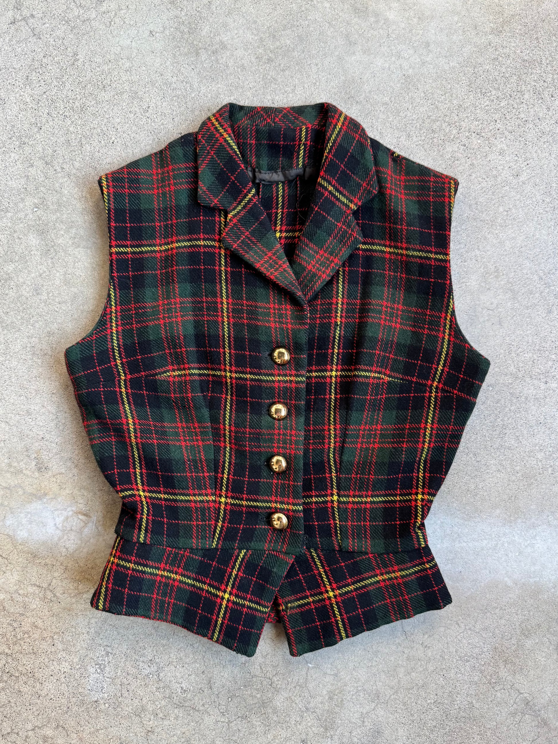 Vintage 1980s Tartan Plaid Buttoned Vest Top.