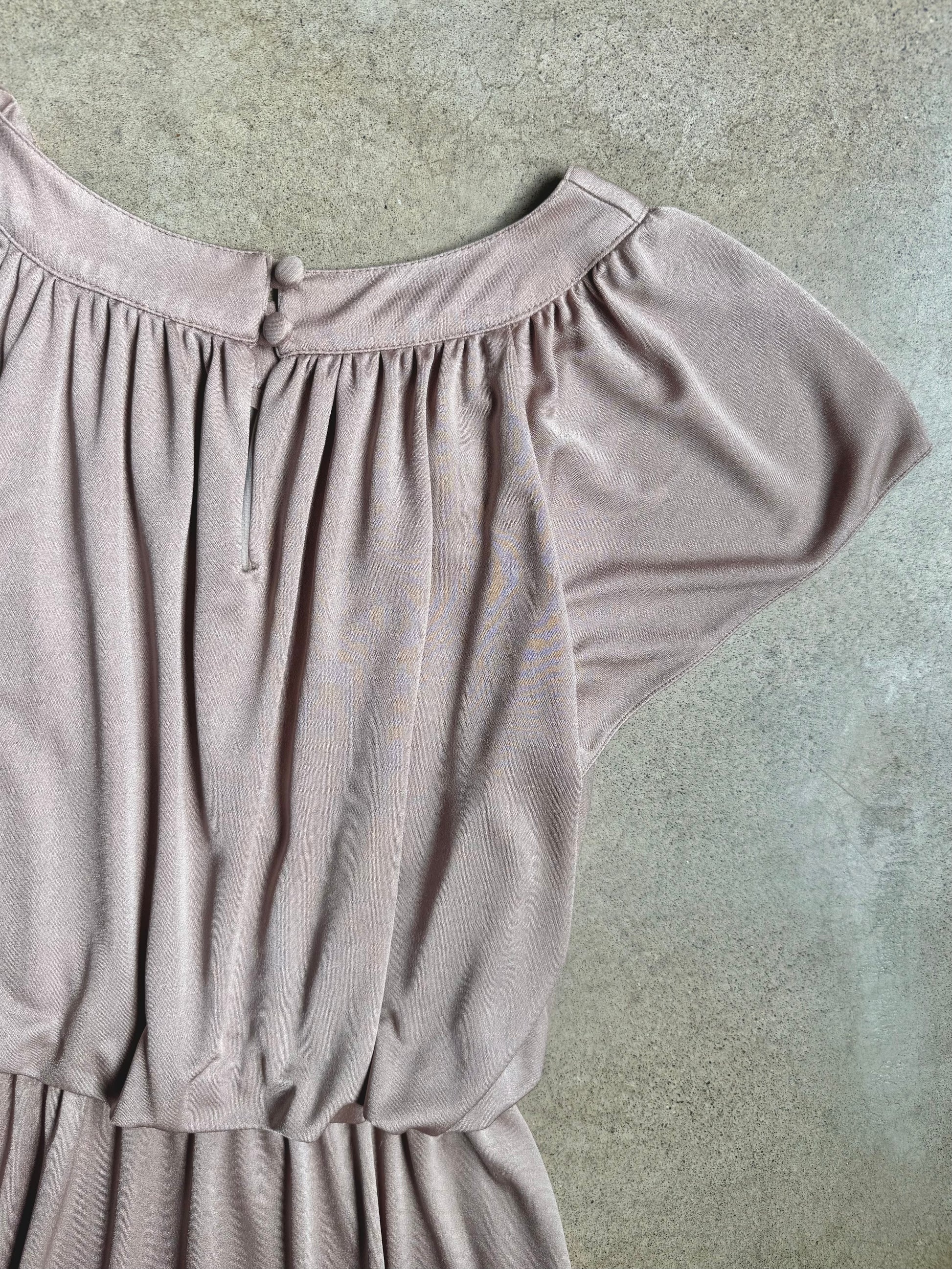 Vintage 1980s Taupe Cinch-Waist Flutter Sleeve Dress | S/M