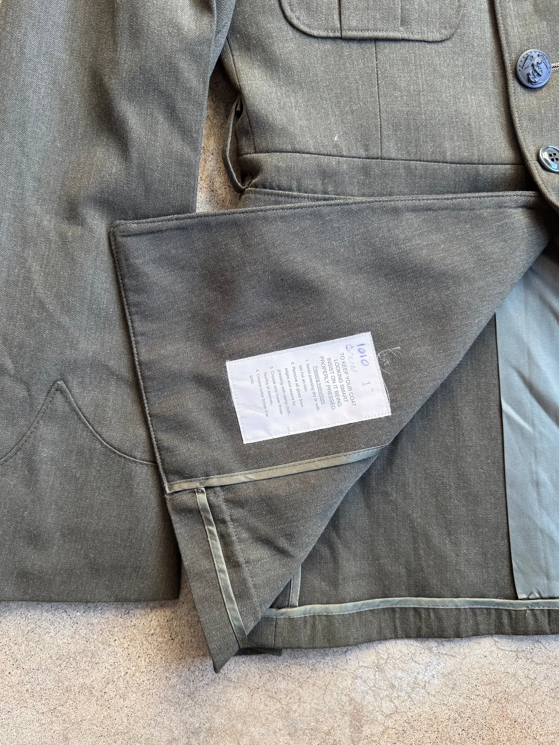 Vintage 1980s U.S. Marine Corps. Military Issue Green Wool-Blend Two-Piece Trouser & Jacket Dress Suit.