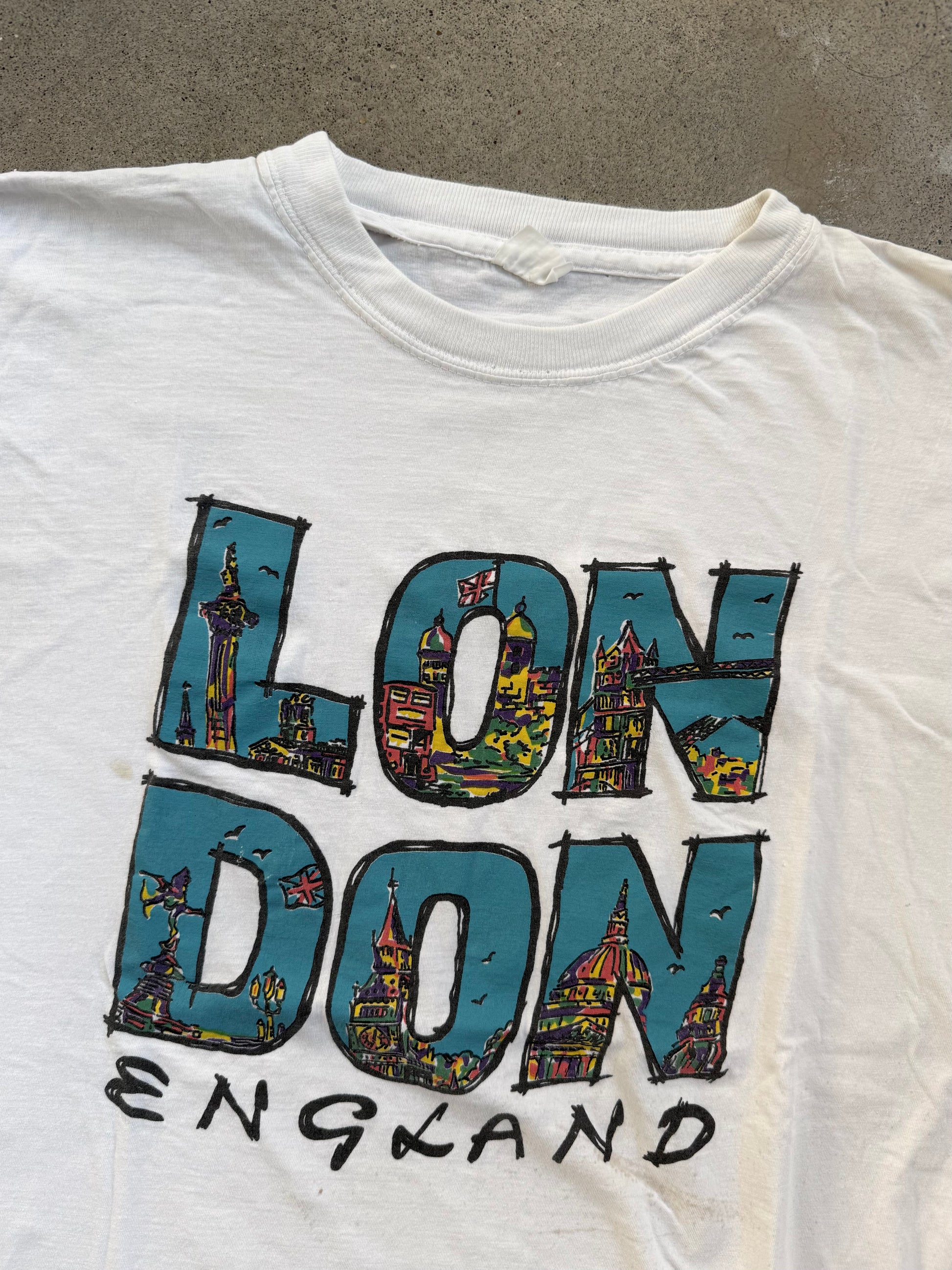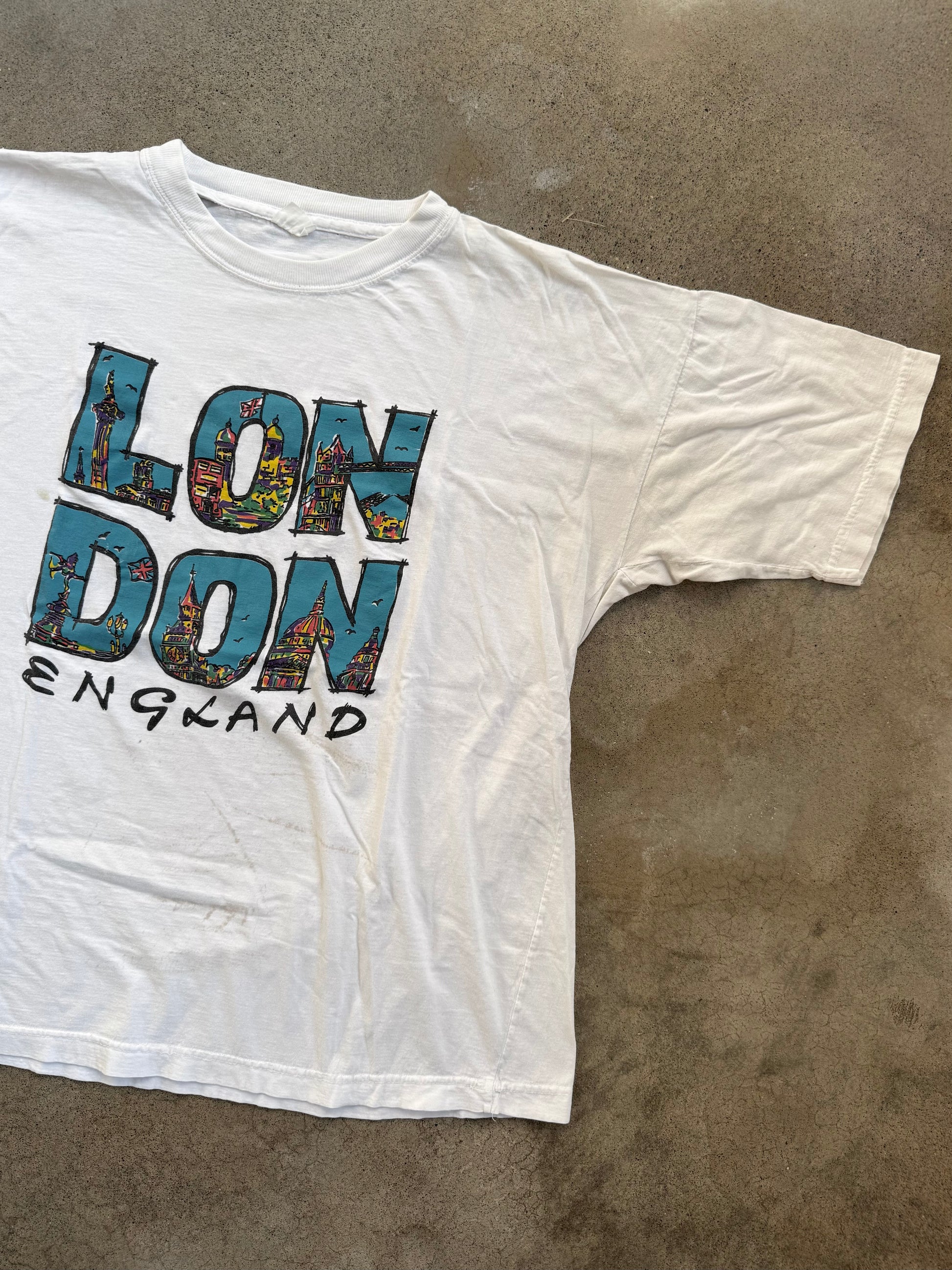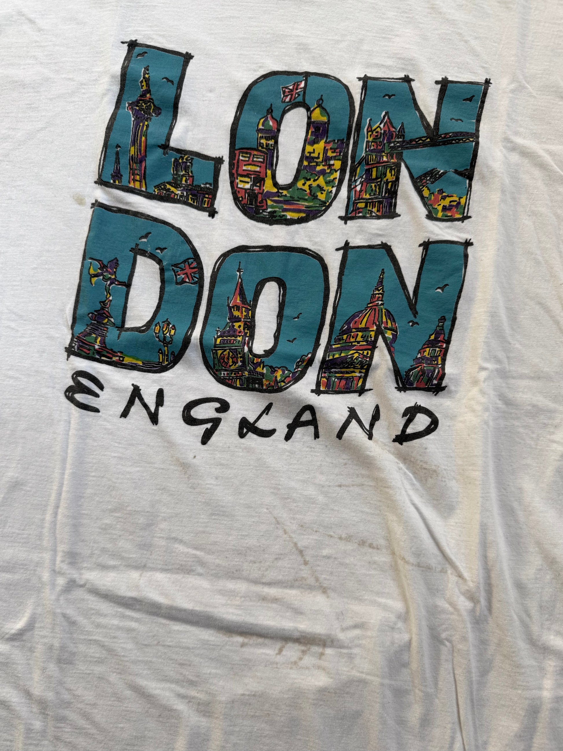 Vintage 1980s White Distressed London England Graphic Tee | XL