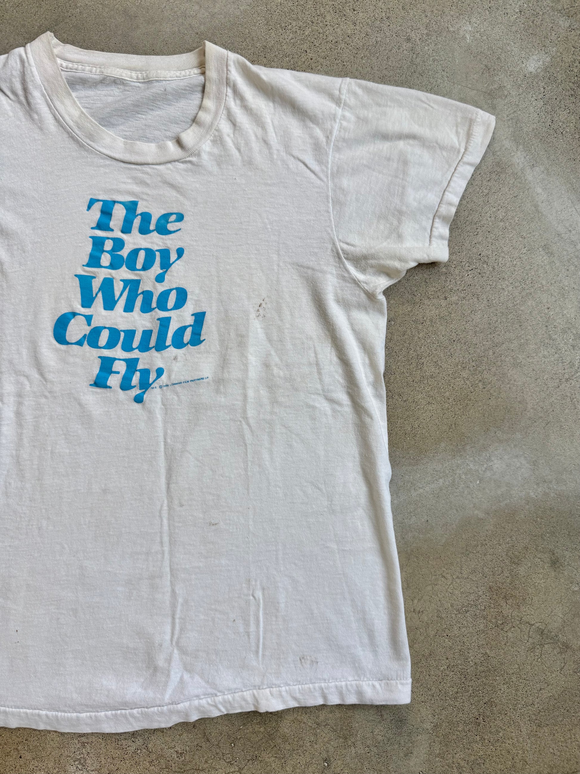 Vintage 1980s Distressed White “The Boy Who Could Fly” Movie Graphic Tee.