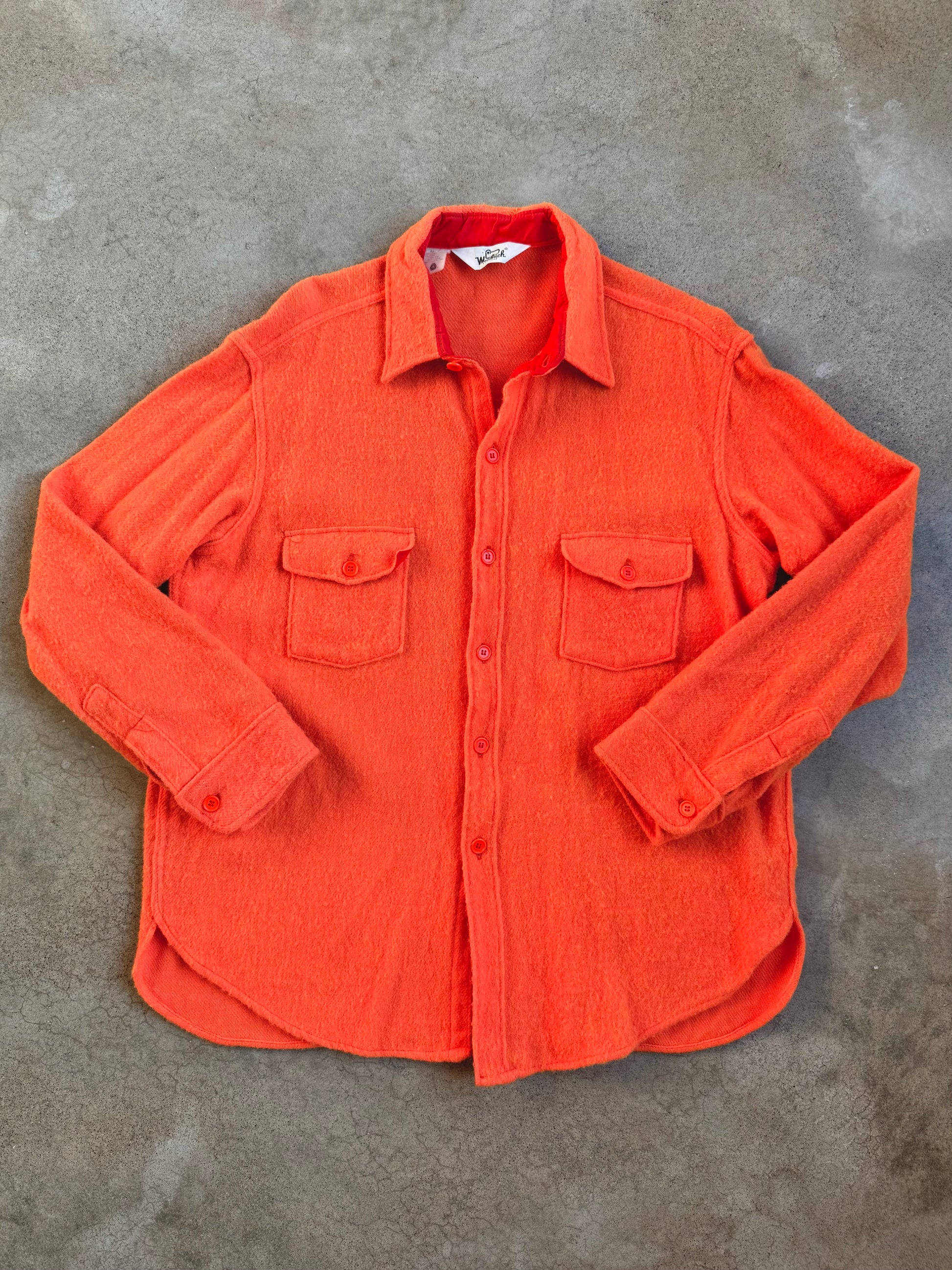 Vintage 1980s Woolrich Bright Orange Utility-Style Wool Shirt Jacket / Overshirt.