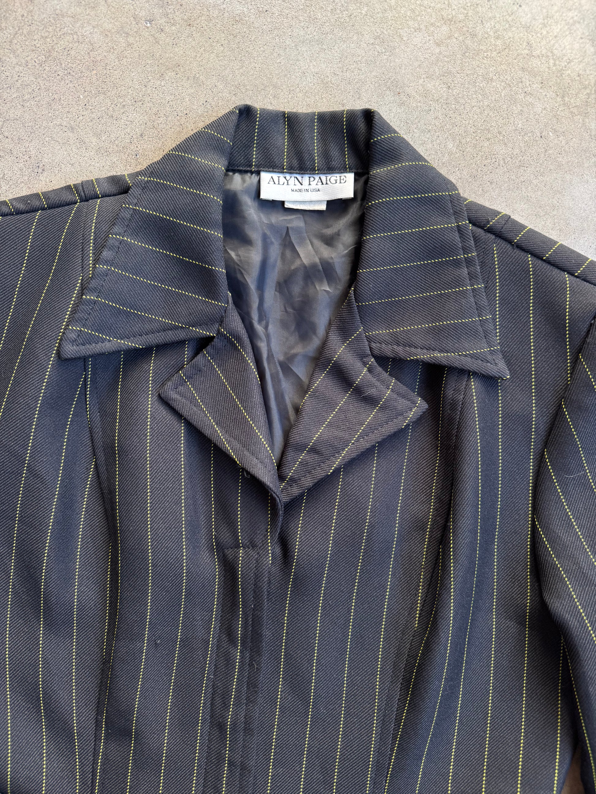 Vintage 1990s Alyn Paige Black & Lime Green Pinstripe Zip-Up Blazer-Style Blouse.