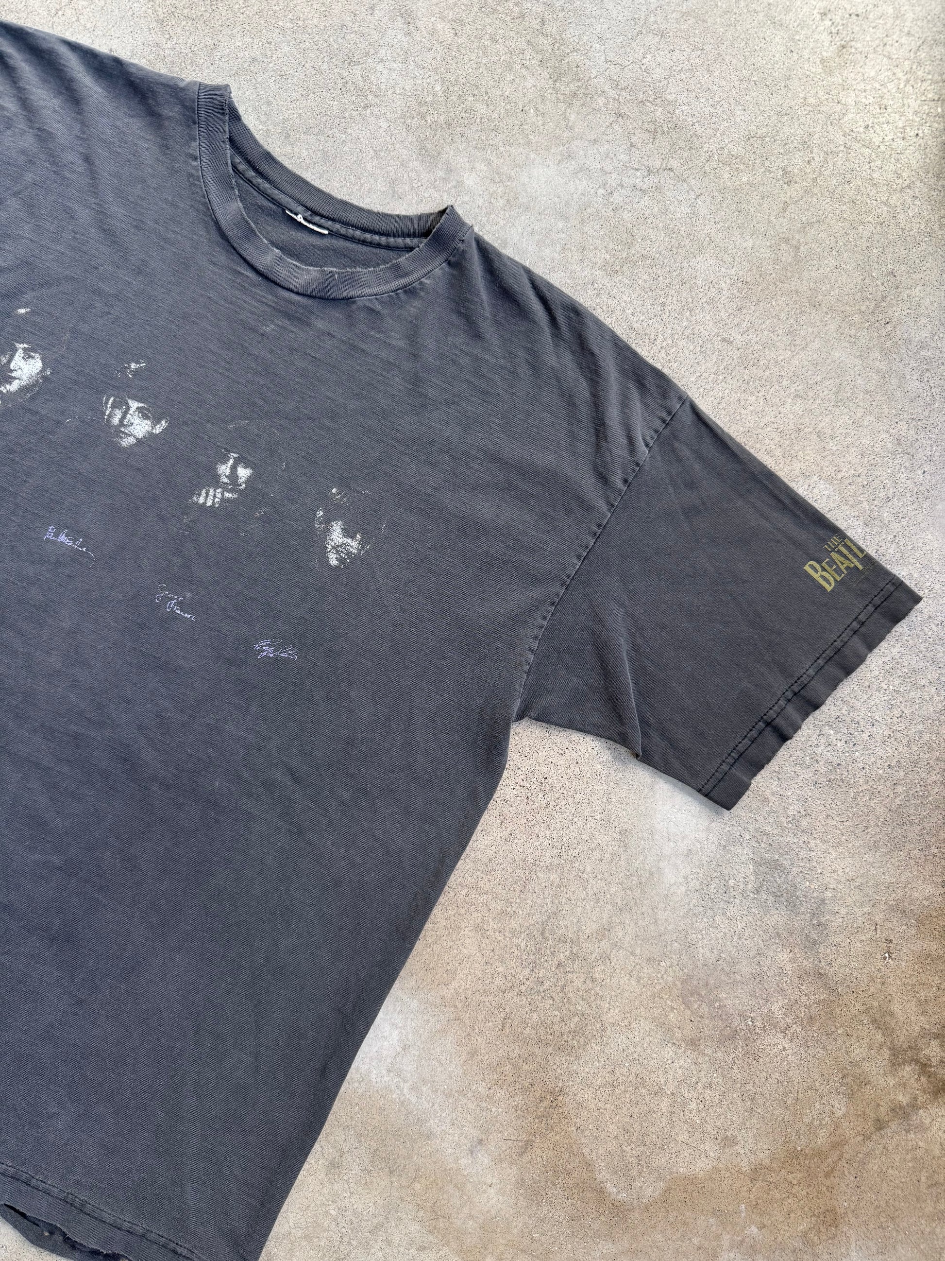 Vintage 1990s Distressed The Beatles Fab Four Autograph Tee | L/XL