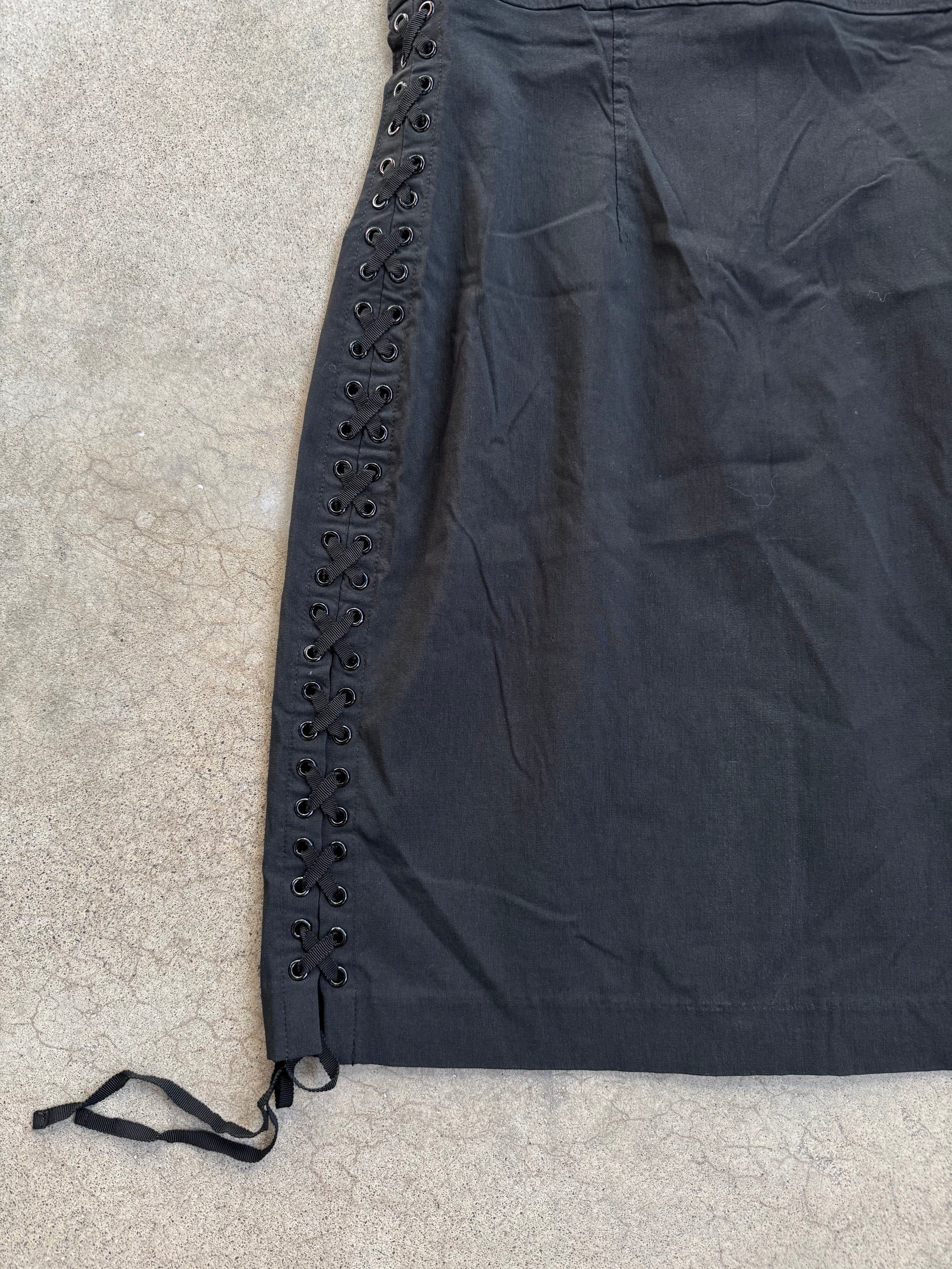 Vintage 1990s Express Black Strapless Mini Dress w/ Lace-Up Side Detailing. Features a zipper closure at back. Stretch fabric.