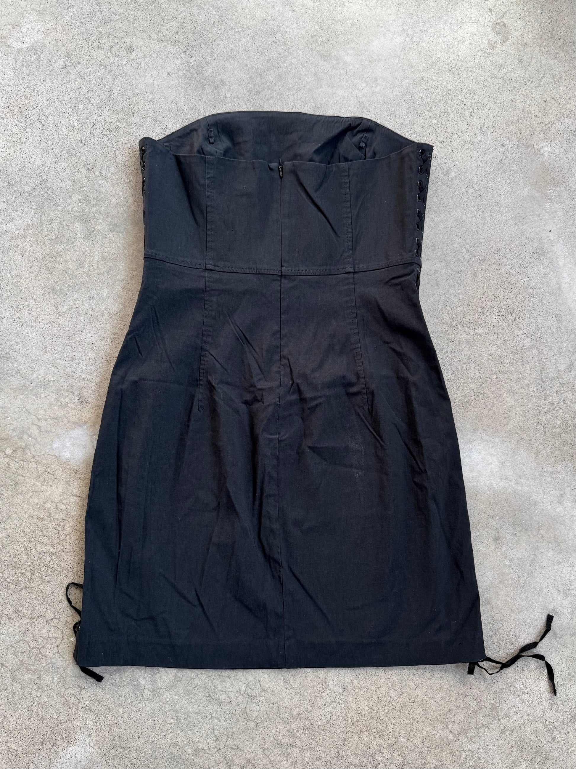 Vintage 1990s Express Black Strapless Lace-Up Mini Dress | M/L