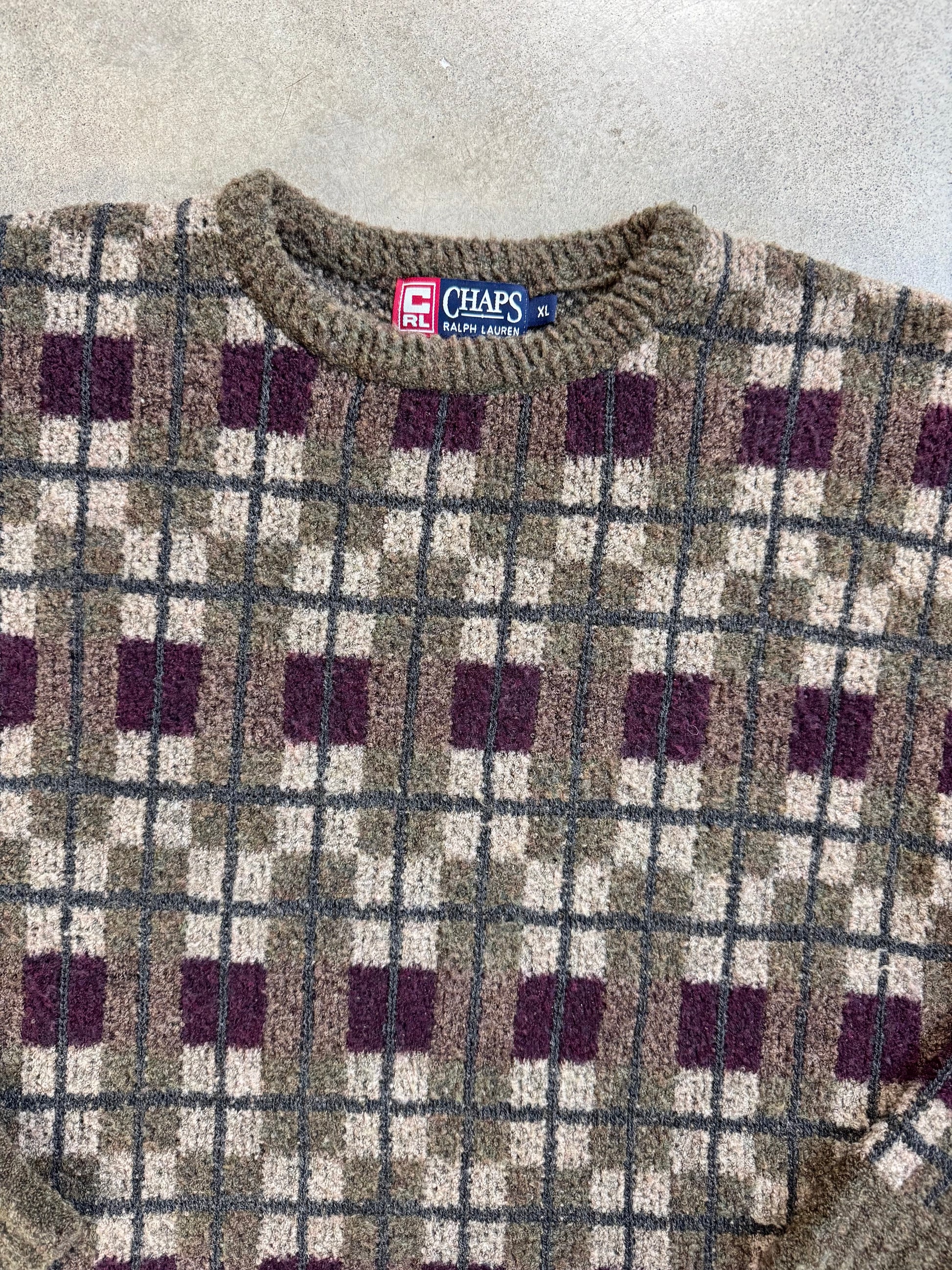 Vintage 1990s Chaps Ralph Lauren Plaid Wool-Blend Crewneck Sweater | XL