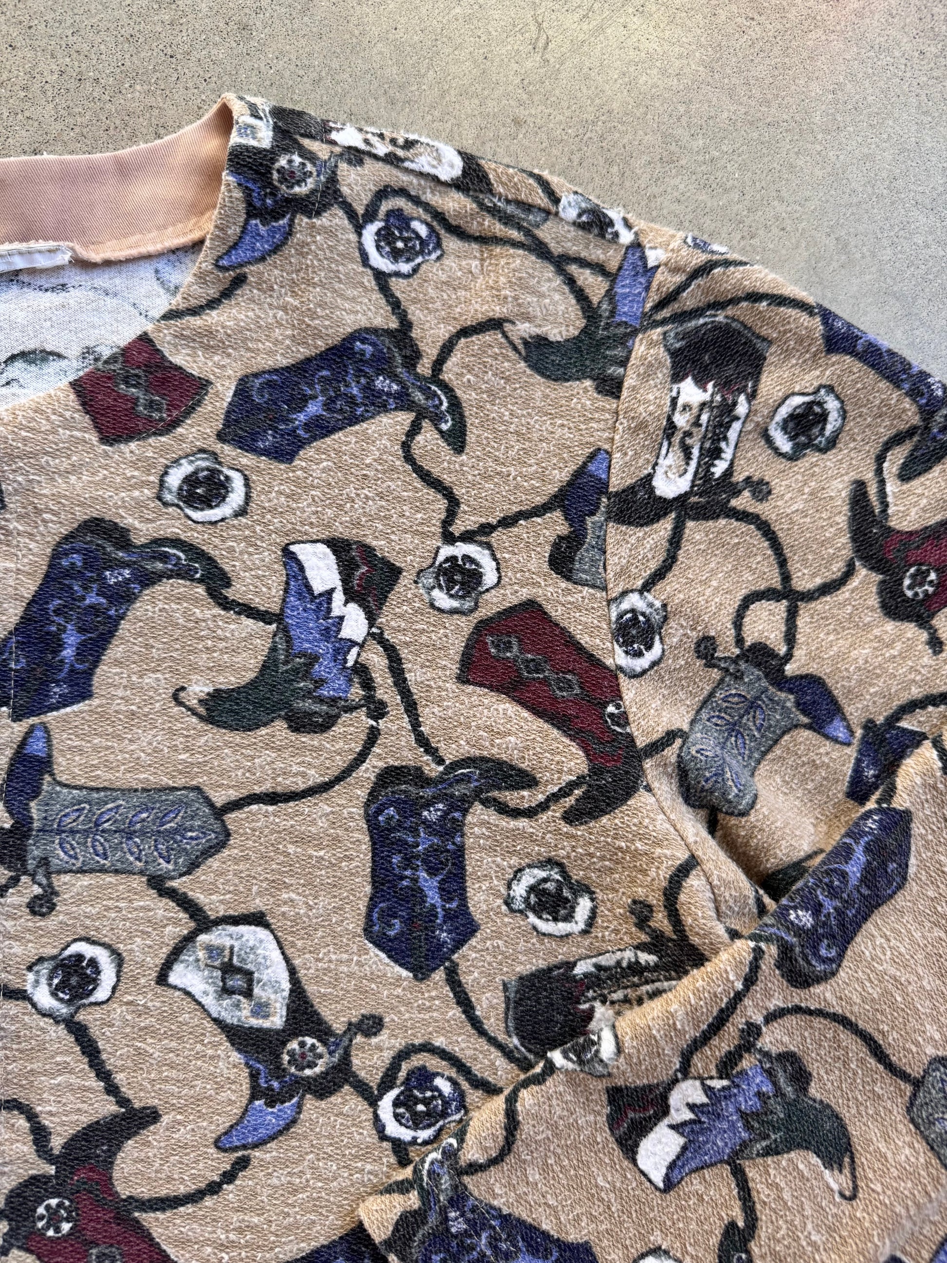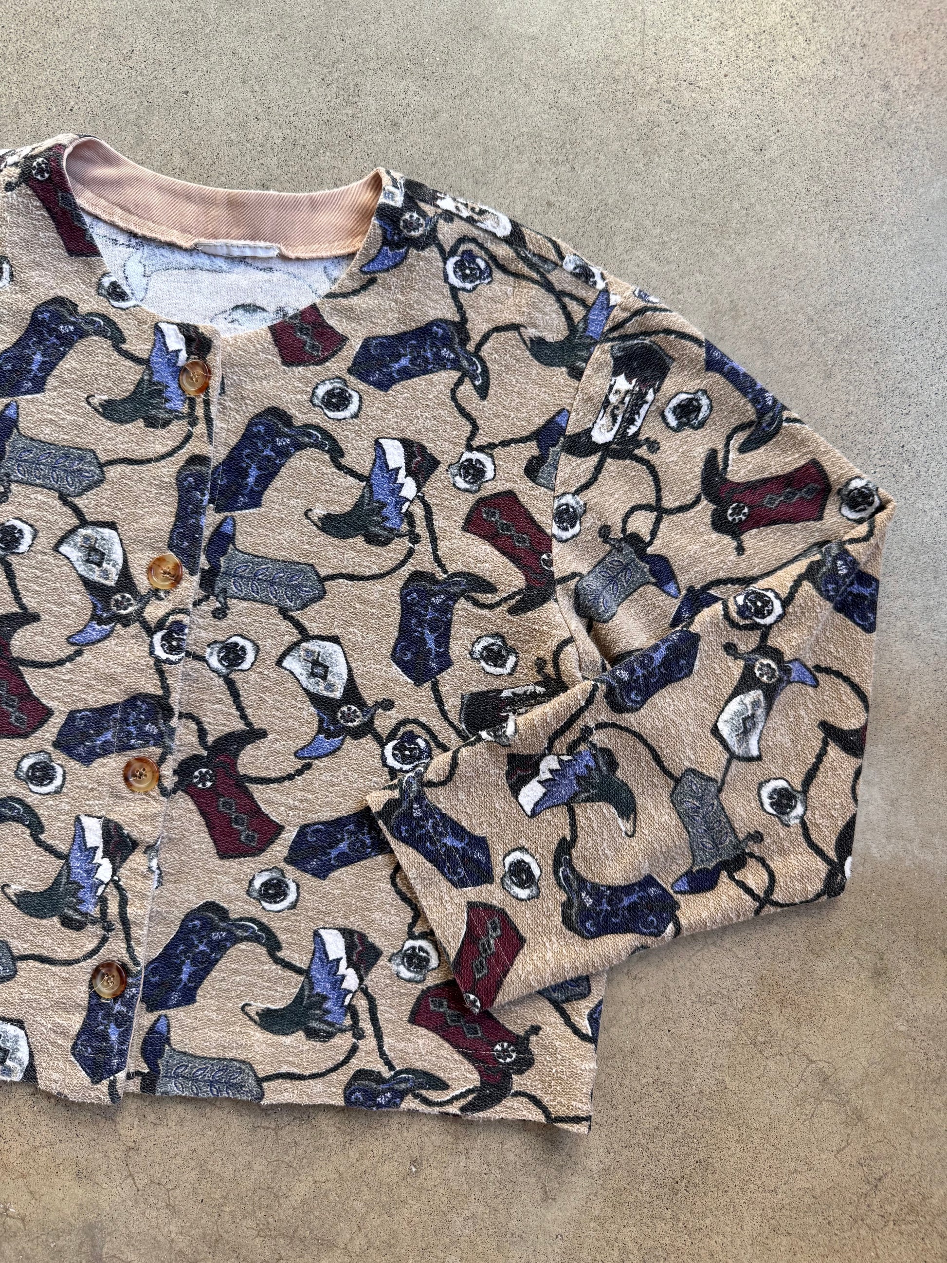 Vintage 1990s Cowboy Boot Printed Button-Up Short Cardigan.