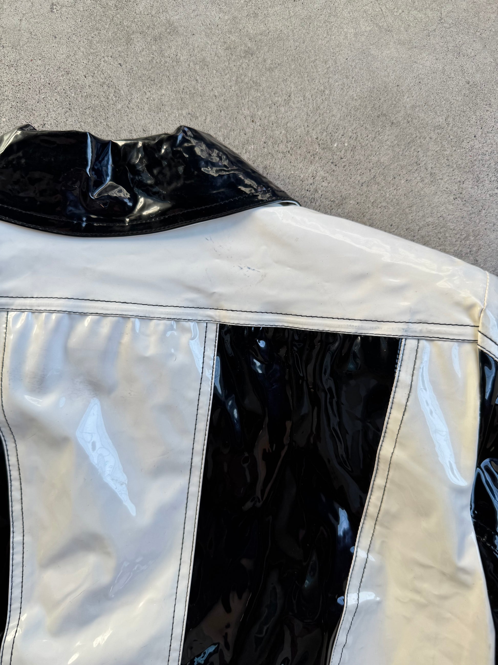 Vintage 1990s Highway Black & White Cropped Vinyl Jacket | Small
