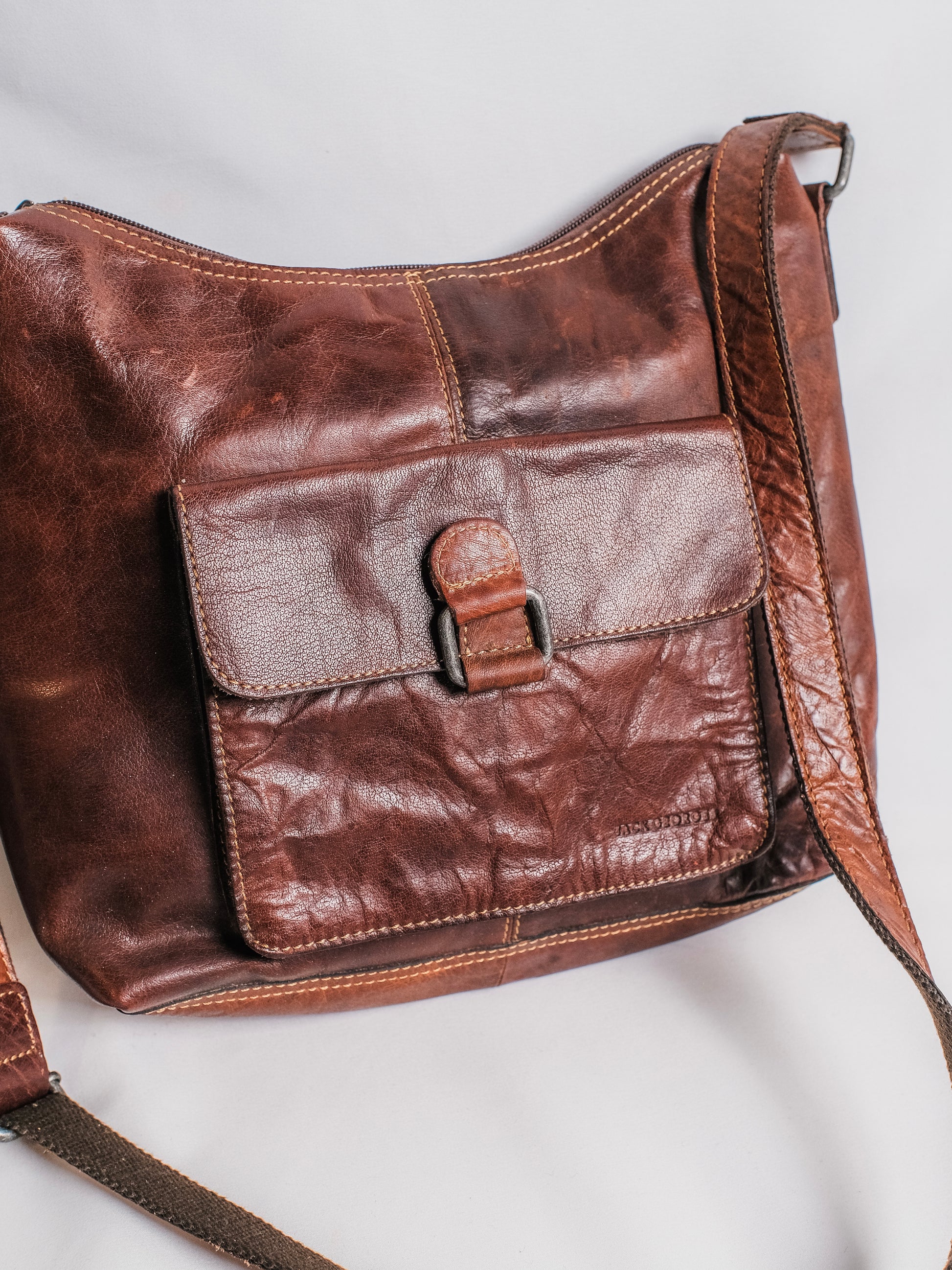 Vintage 1990s Jack Georges Voyager Brown Leather Crossbody Bag