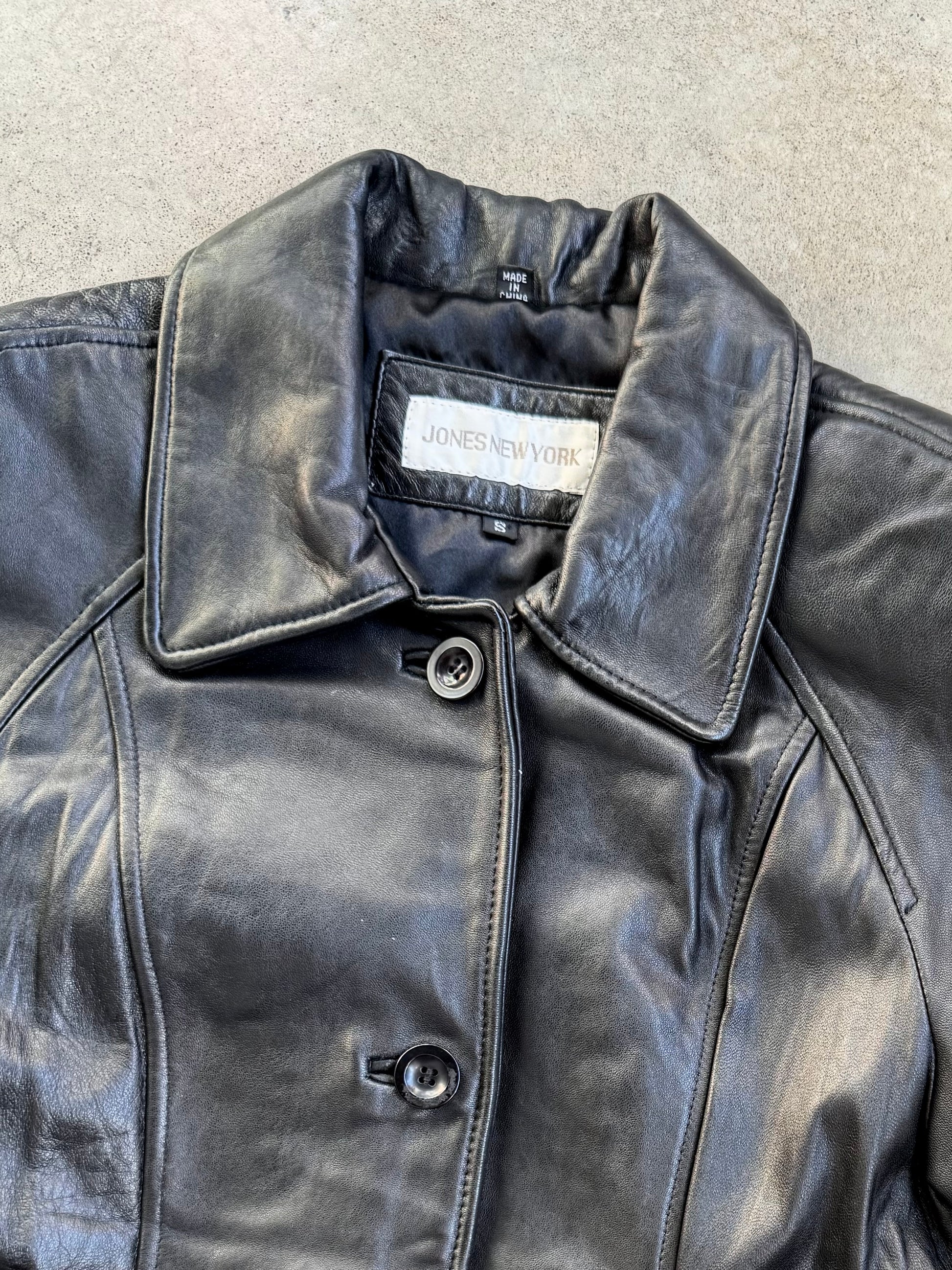 Vintage 1990s Jones New York Black Leather Button-Up Jacket | Small