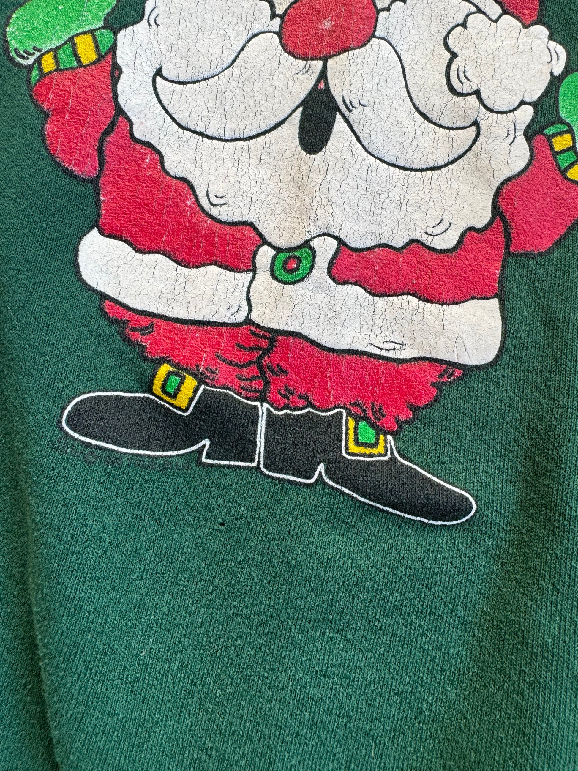 Vintage 1990s Lee Christmas “Ho Ho Ho” Santa Graphic Green Crewneck Sweatshirt.