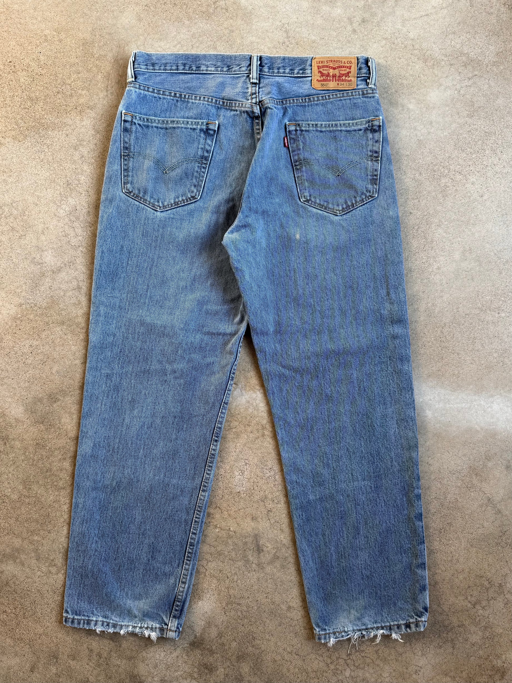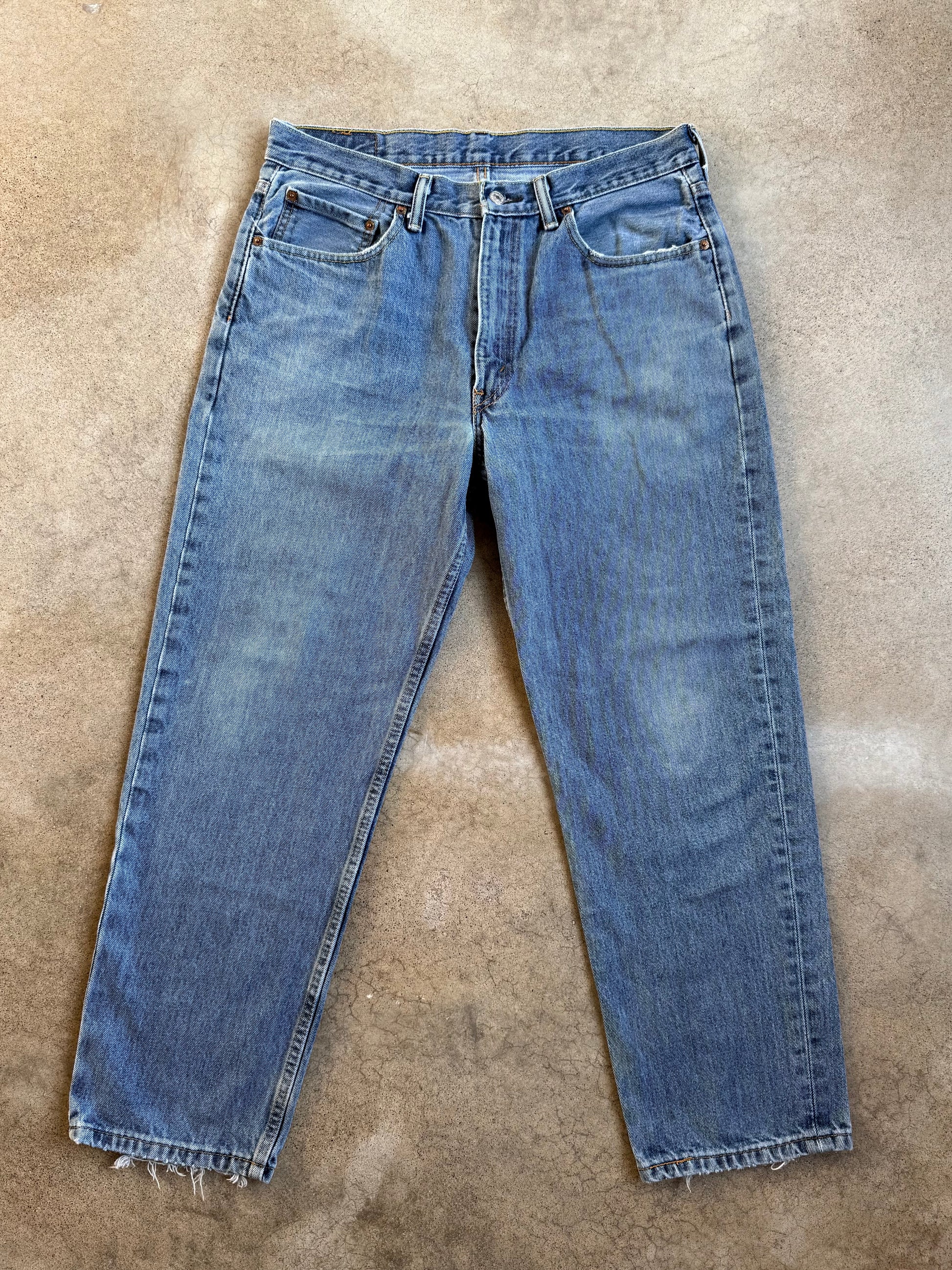 Levi’s 550 Relaxed Fit Faded Medium Wash Jeans. Features a zipper fly with button closure. 100% cotton denim.