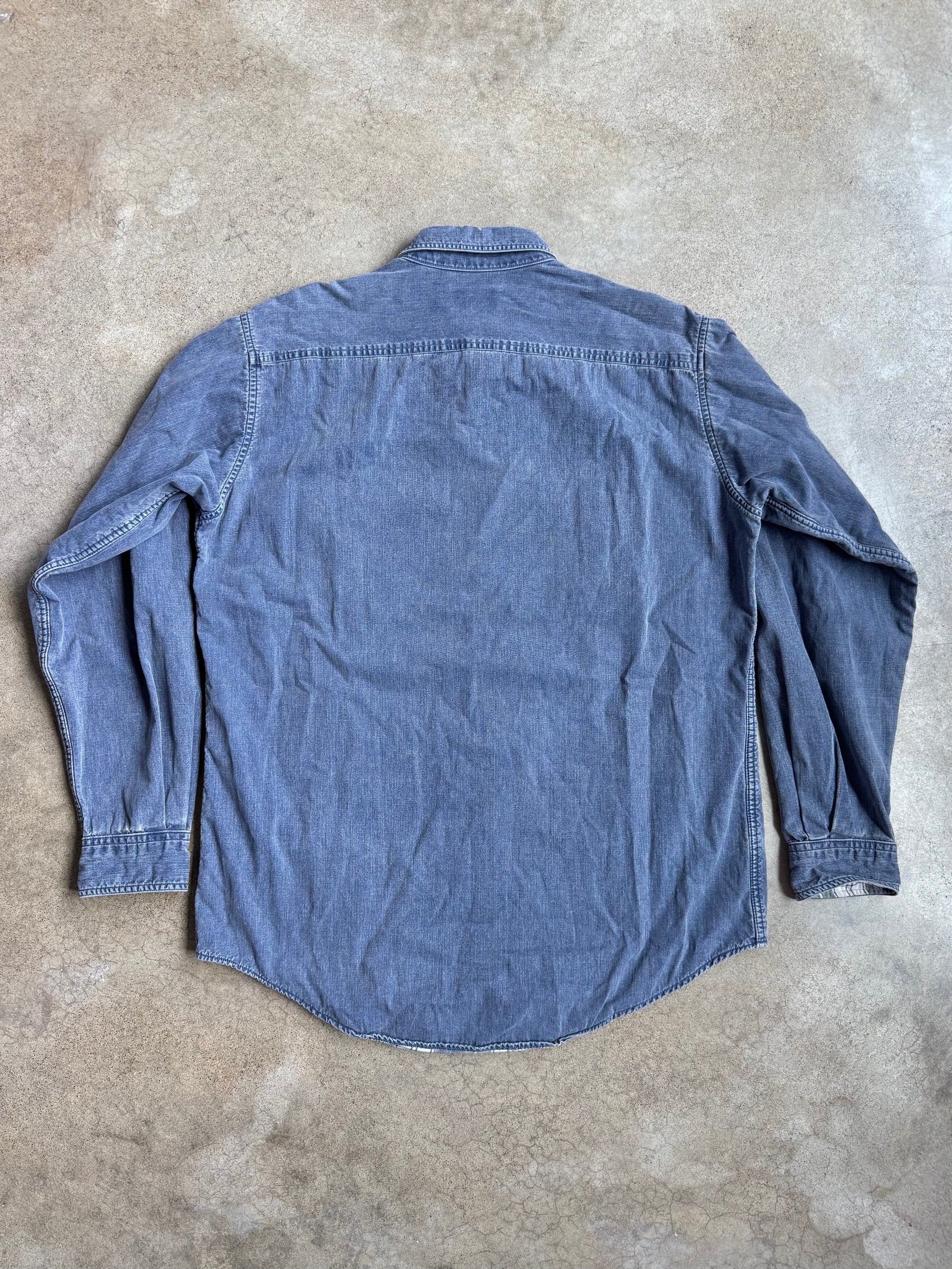 Vintage 1990s L.L. Bean Denim Utility-Style Buttoned Shirt w/ Cotton Flannel Lining.