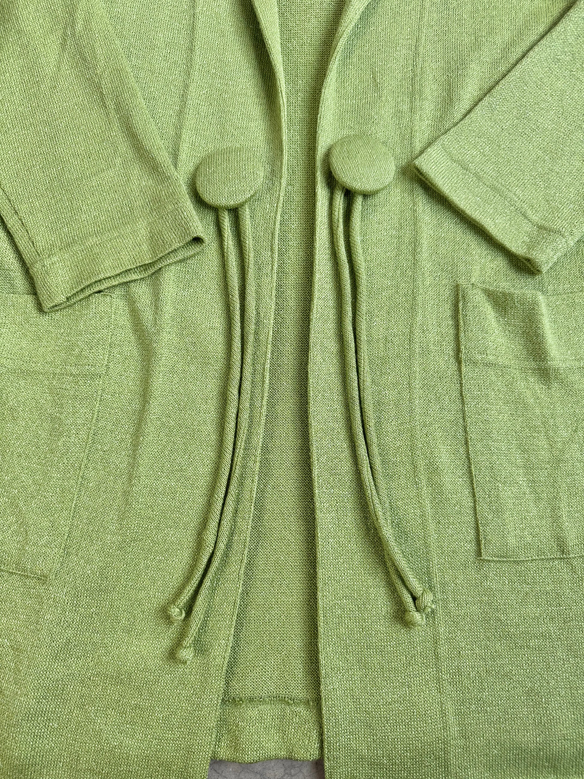Vintage 1990s Platinum by Dorothy Schoelen Lime Green Longline Open Cardigan.