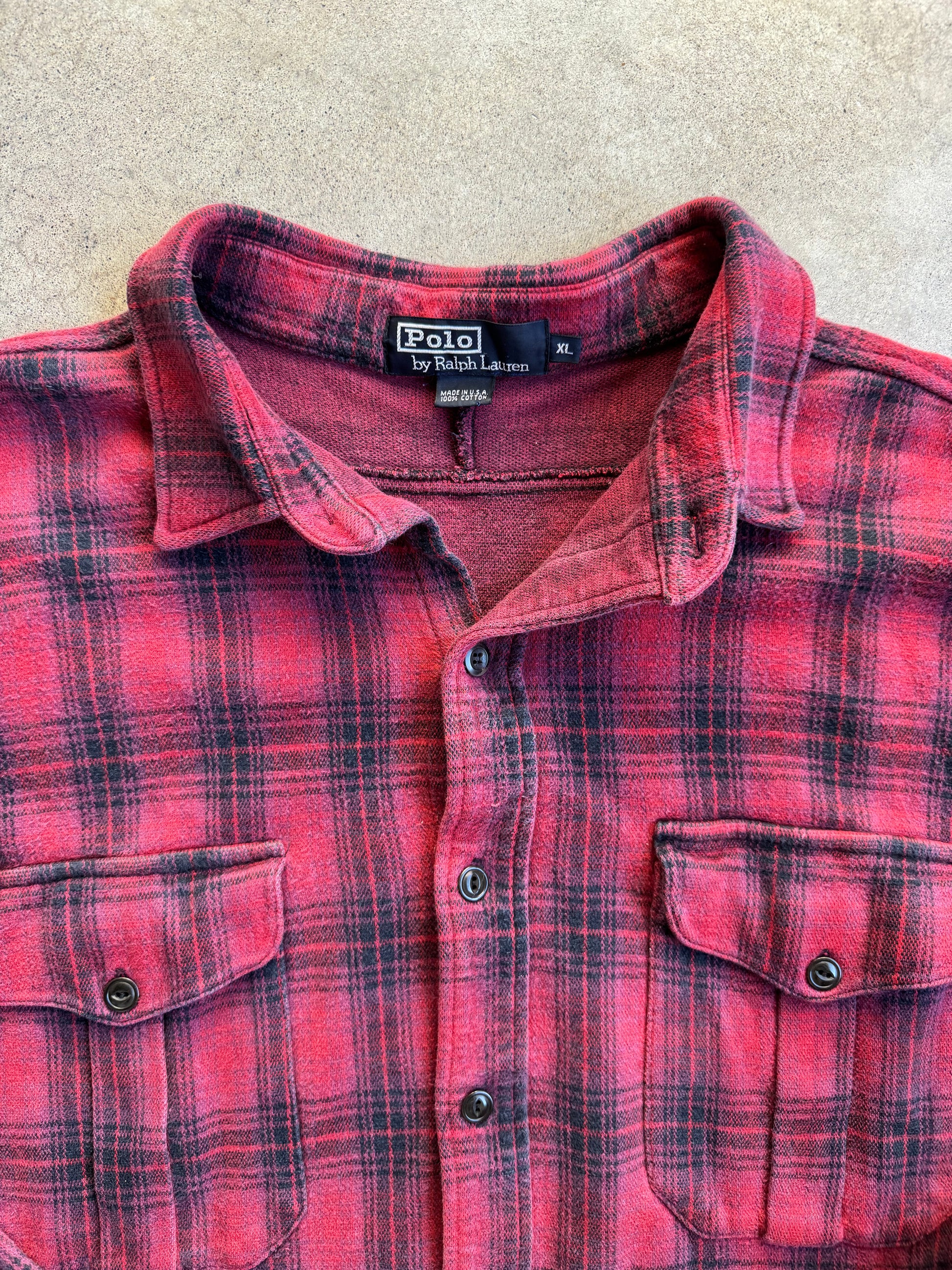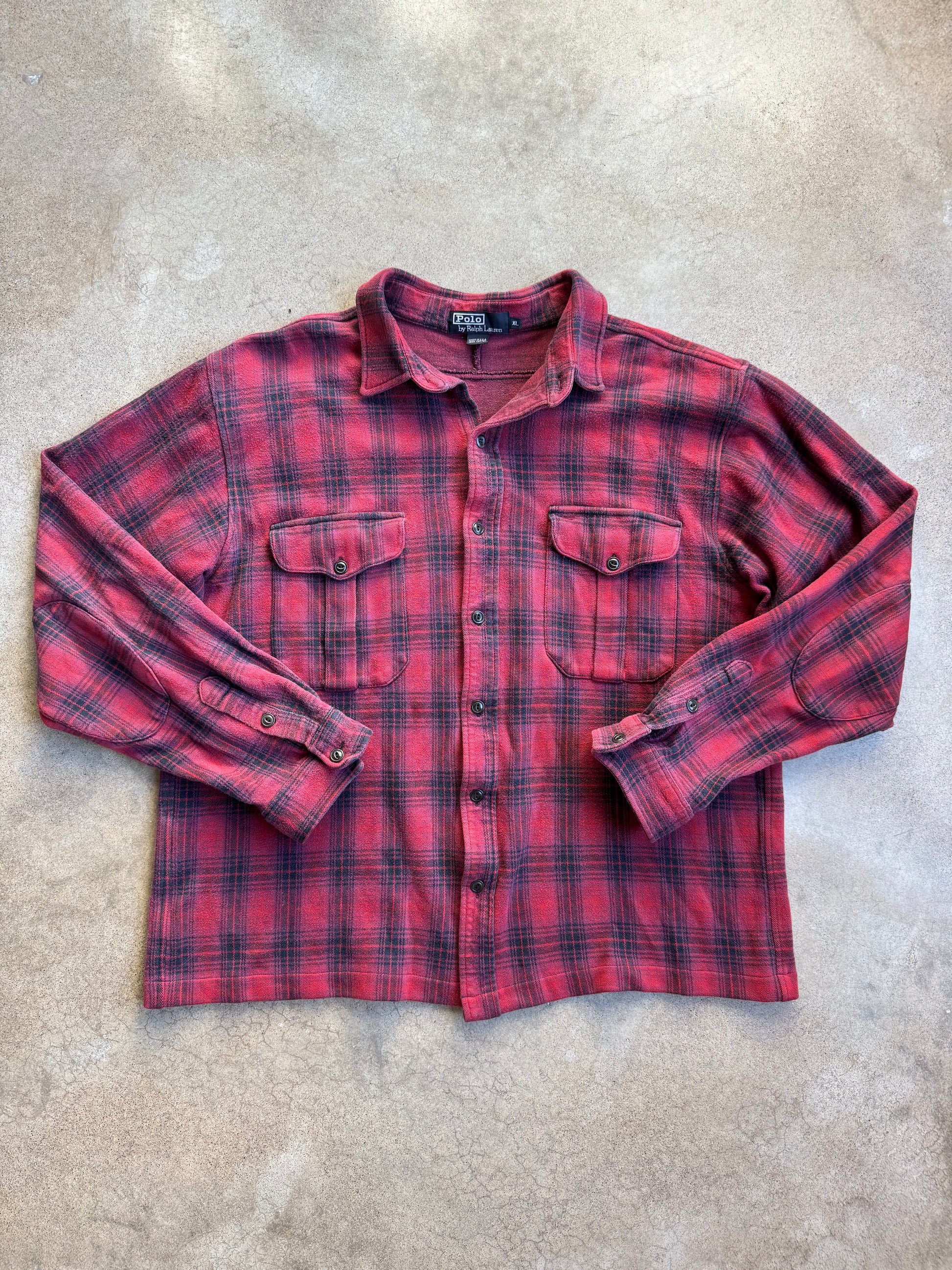 Vintage 1990s Polo Ralph Lauren Red Plaid Cotton Flannel Shirt | XL