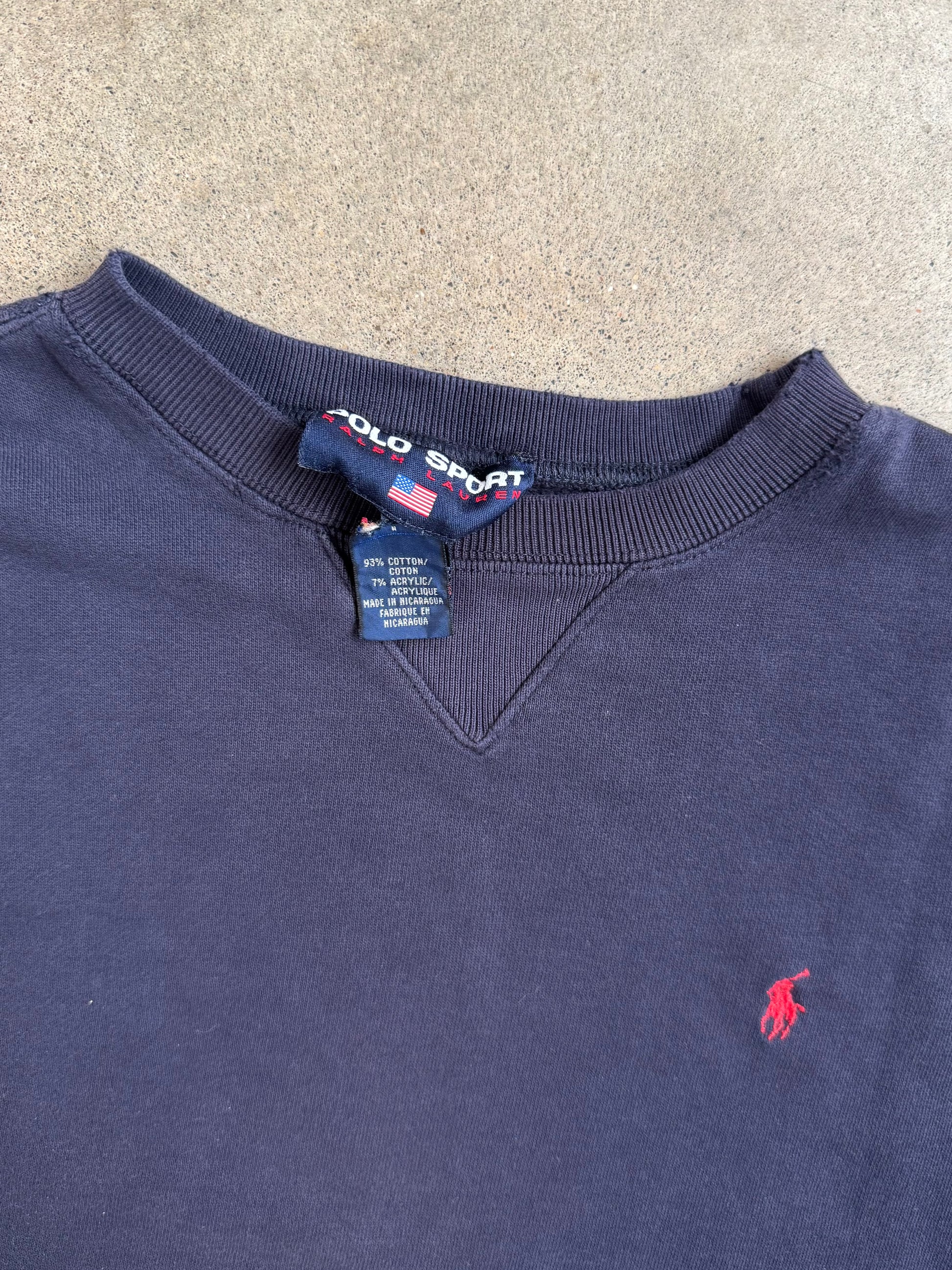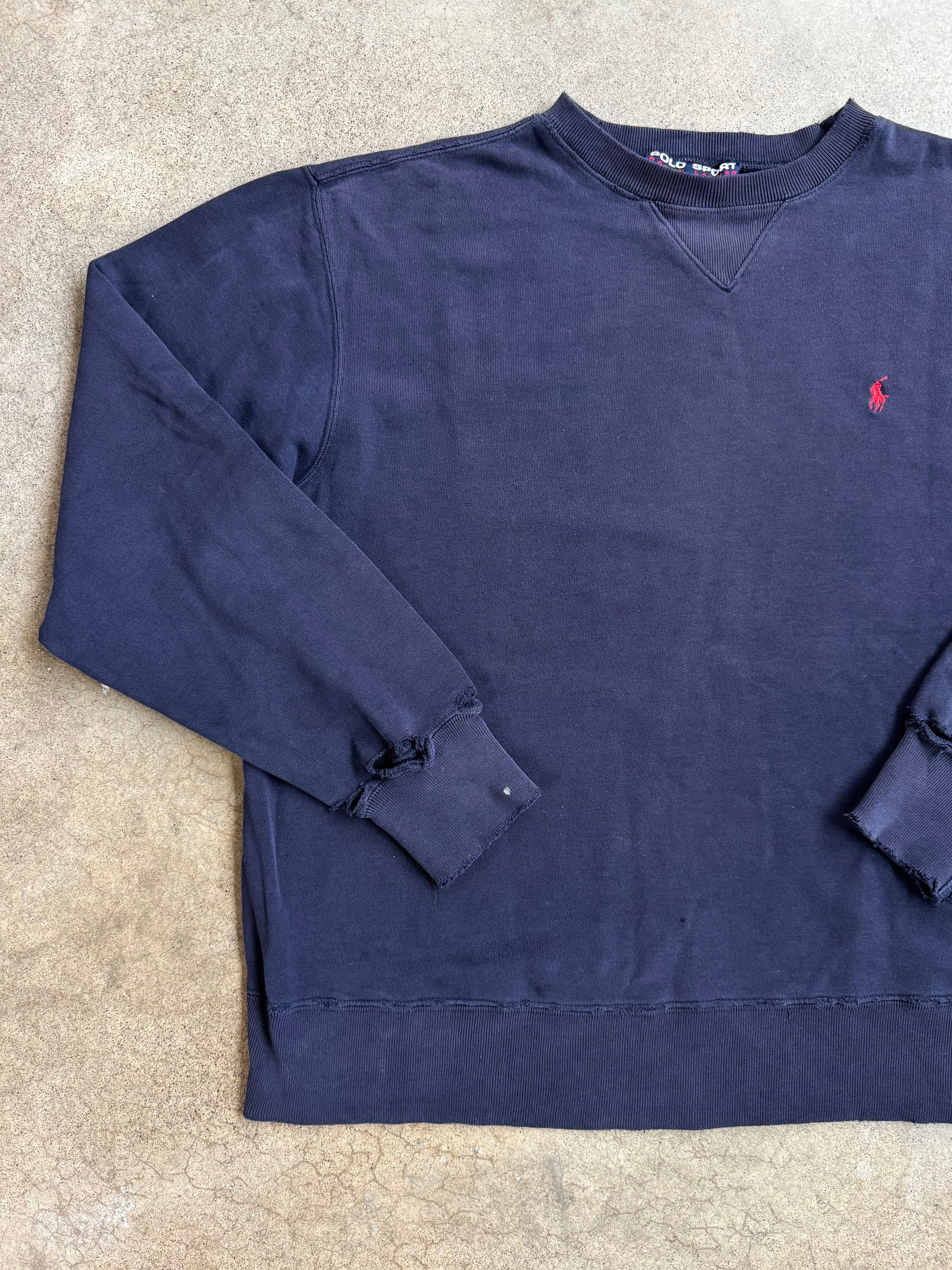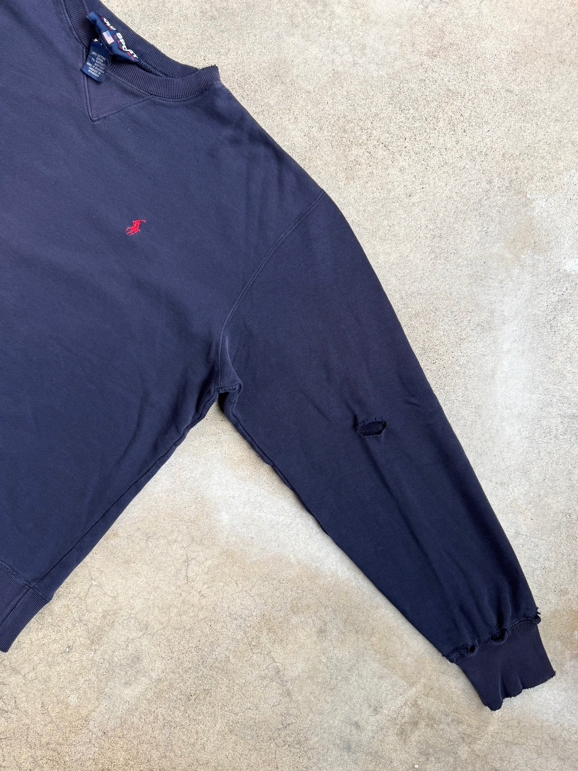 Vintage 1990s Polo Sport Navy Blue Distressed Crewneck Sweatshirt | Medium