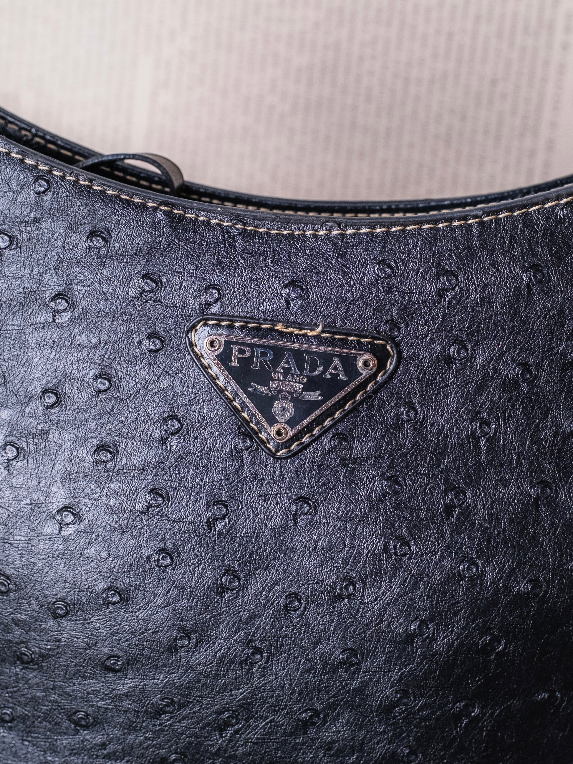 90s Prada Dupe Faux Ostrich Shoulder Bag