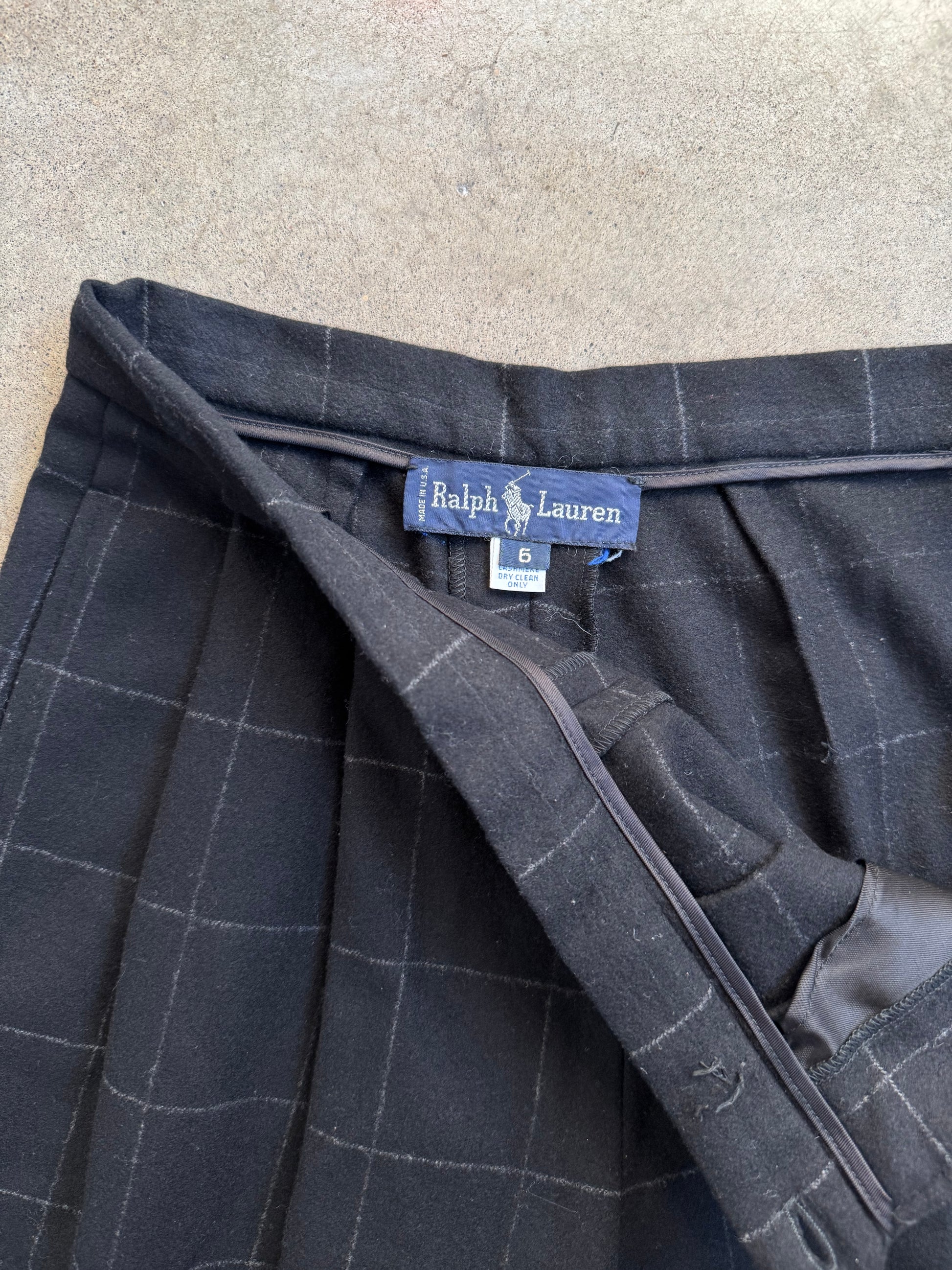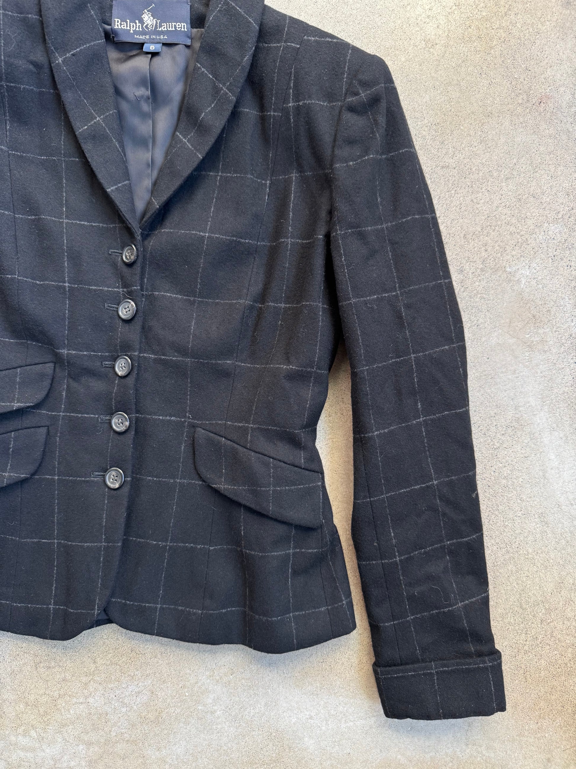 Vintage 1990s Ralph Lauren Black Check Pattern Wool & Cashmere Two-Piece Suit | Women’s 6