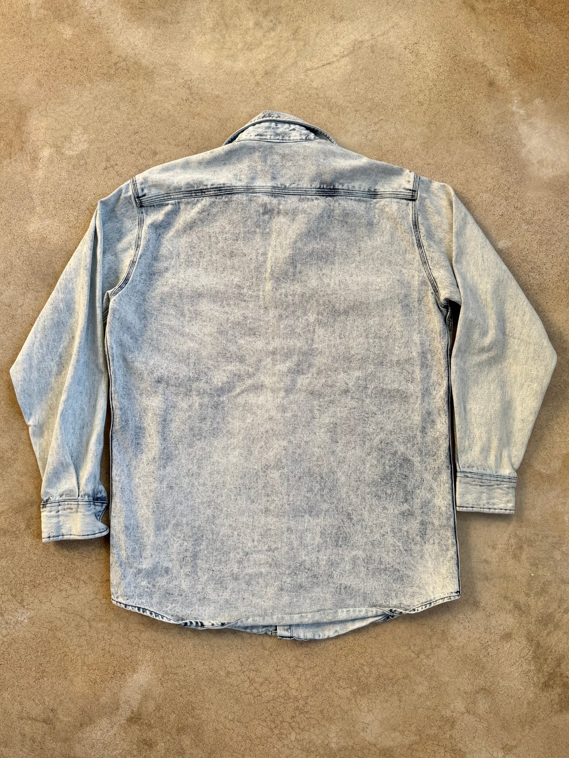 Vintage 1990s St. John’s Bay Acid Wash Denim Shirt. 100% cotton heavy denim fabric.