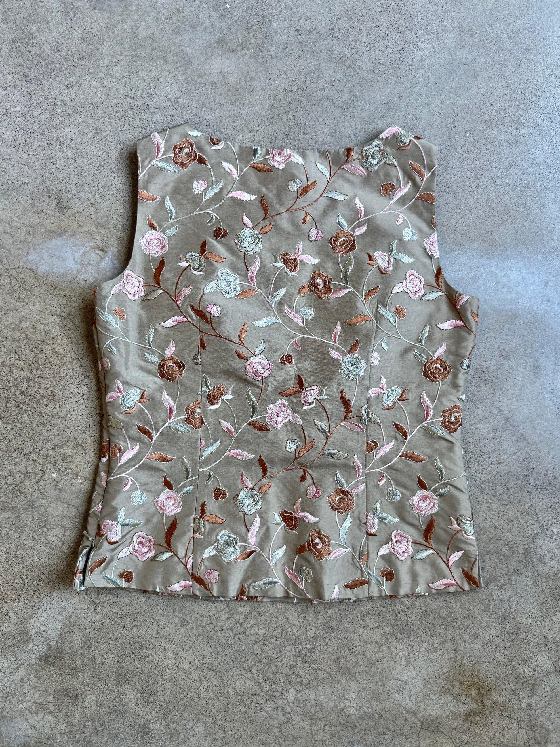 Vintage 1990s Talbots Pure Silk Floral Embroidered Sleeveless Top | XS/S