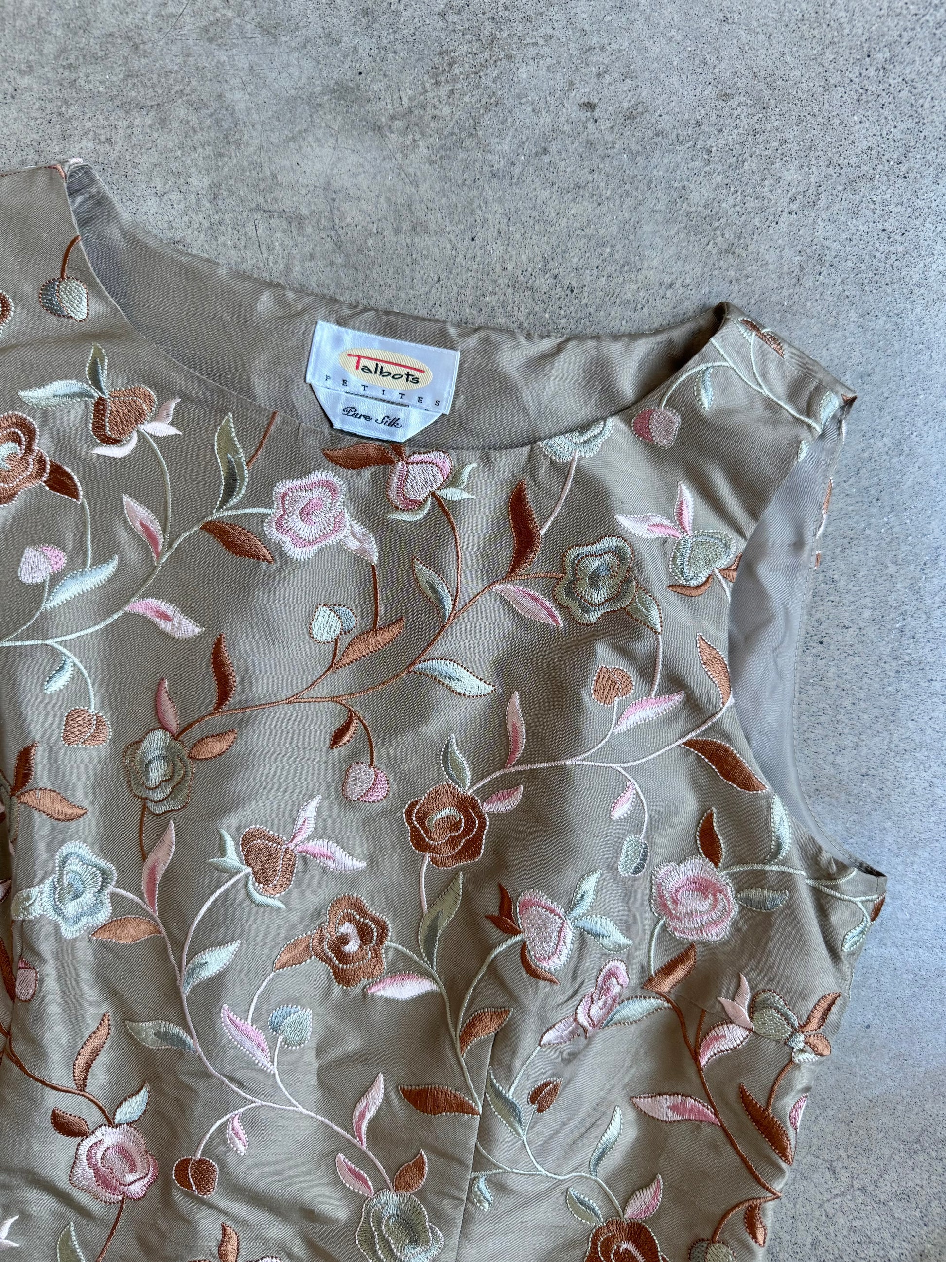 Vintage 1990s Talbots Pure Silk Floral Embroidered Sleeveless Top. Features a zipper closure at side seam. Fully lined.