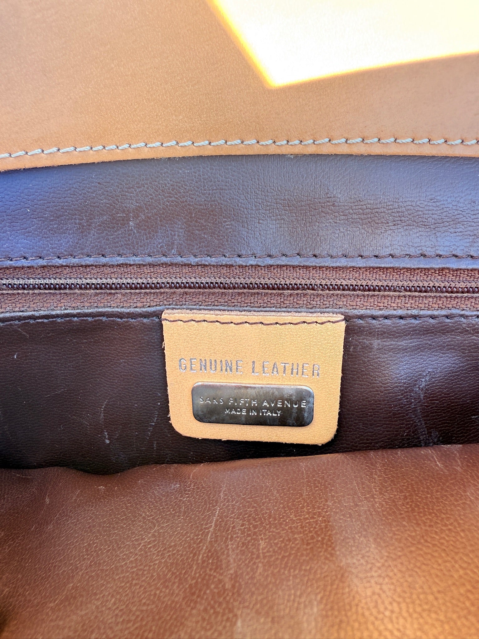 Vintage 1990s Saks Fifth Ave Tan Leather Top Handle Bag