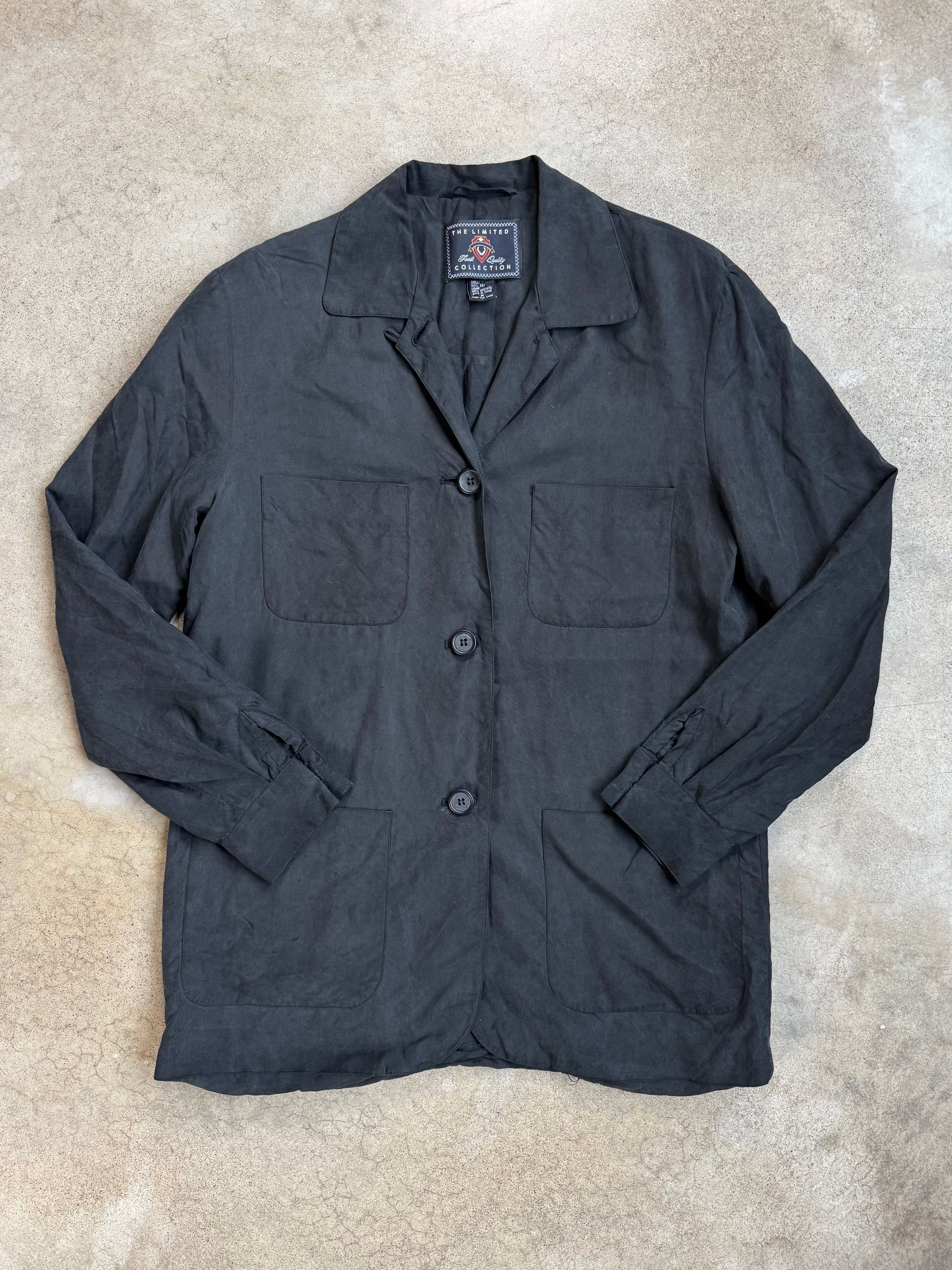 Vintage 1990s The Limited Black Silk Shirt Jacket | Medium
