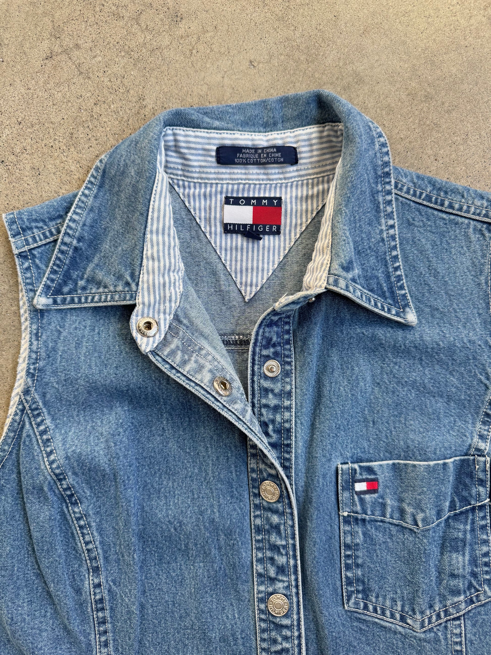 Vintage 1990s Tommy Hilfiger Sleeveless Button-Front Denim Dress.