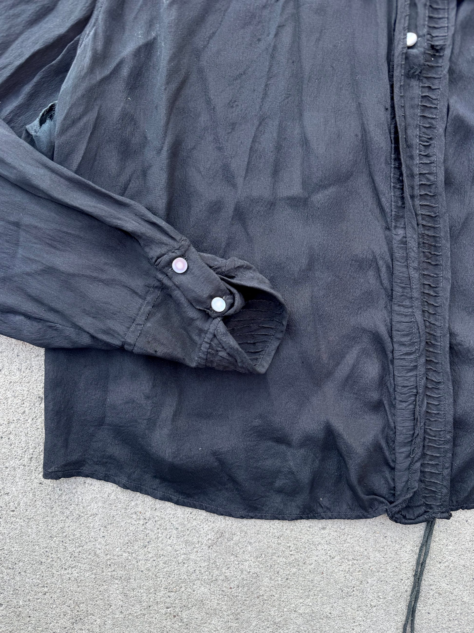 Antique 1910-20s 100% Silk Black Sheer Blouse | Large