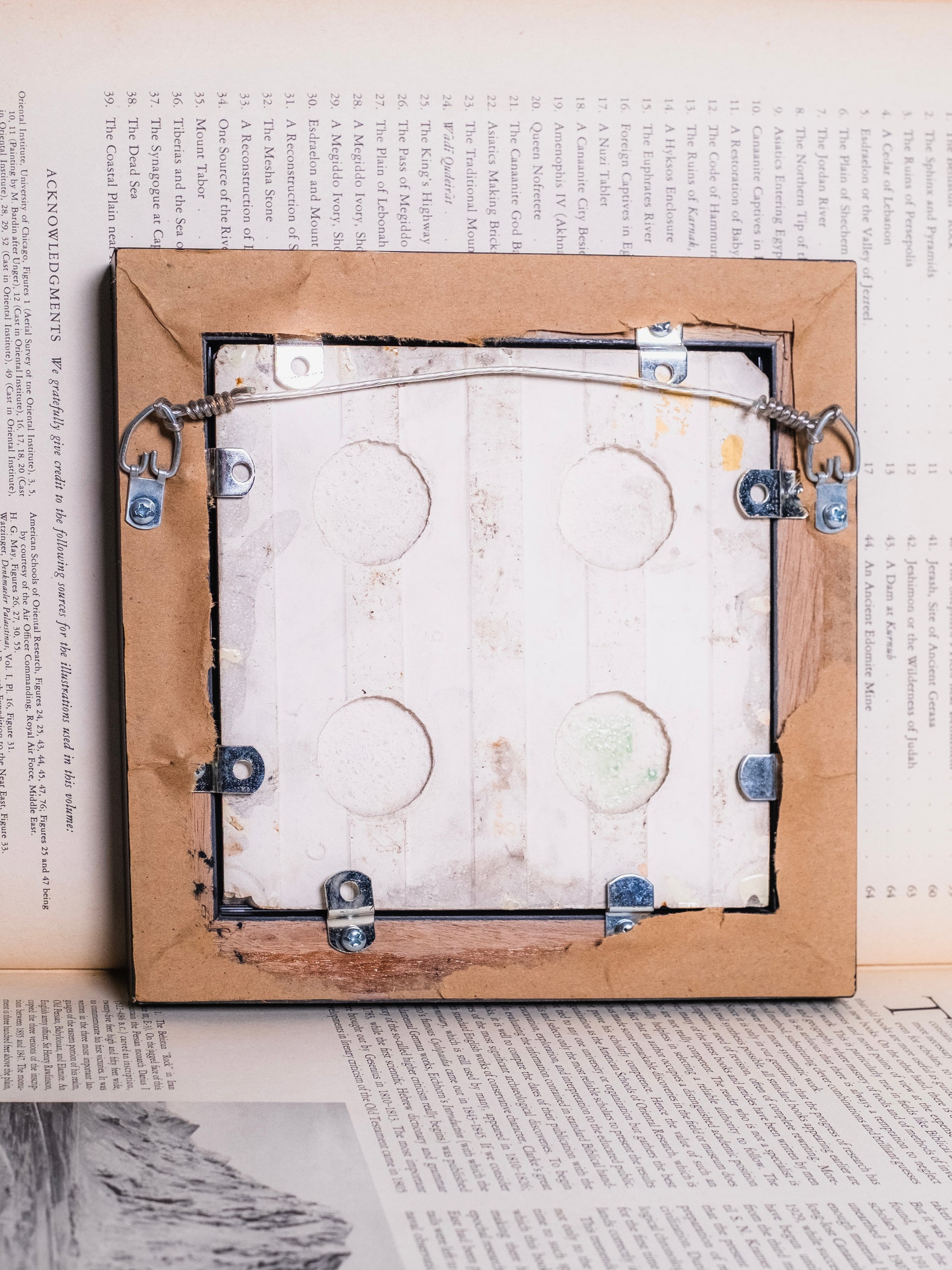 Antique-Style Art Nouveau Blue Flower Tile Framed Art.