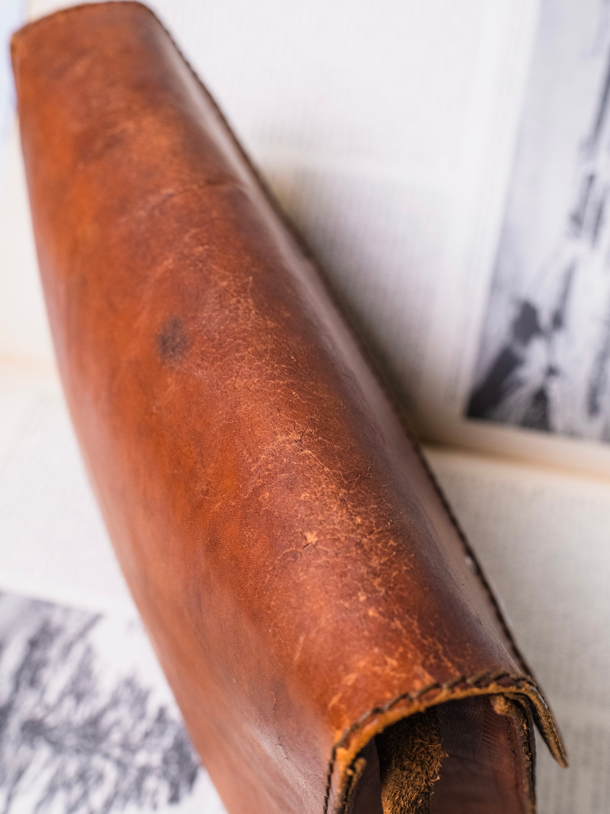 Item Condition - Leather is worn & stained throughout, strap leather is cracking - see photos for imperfections.