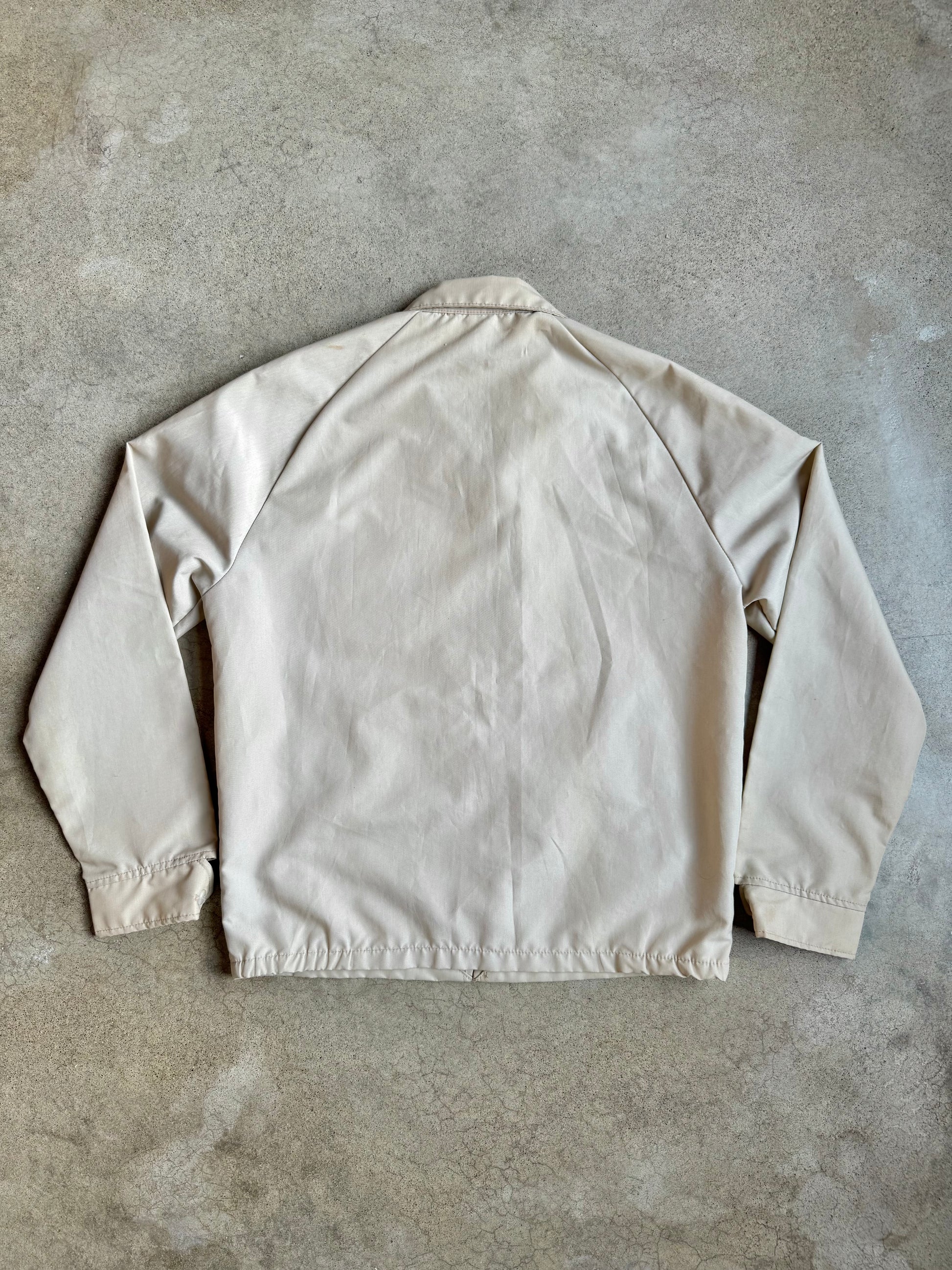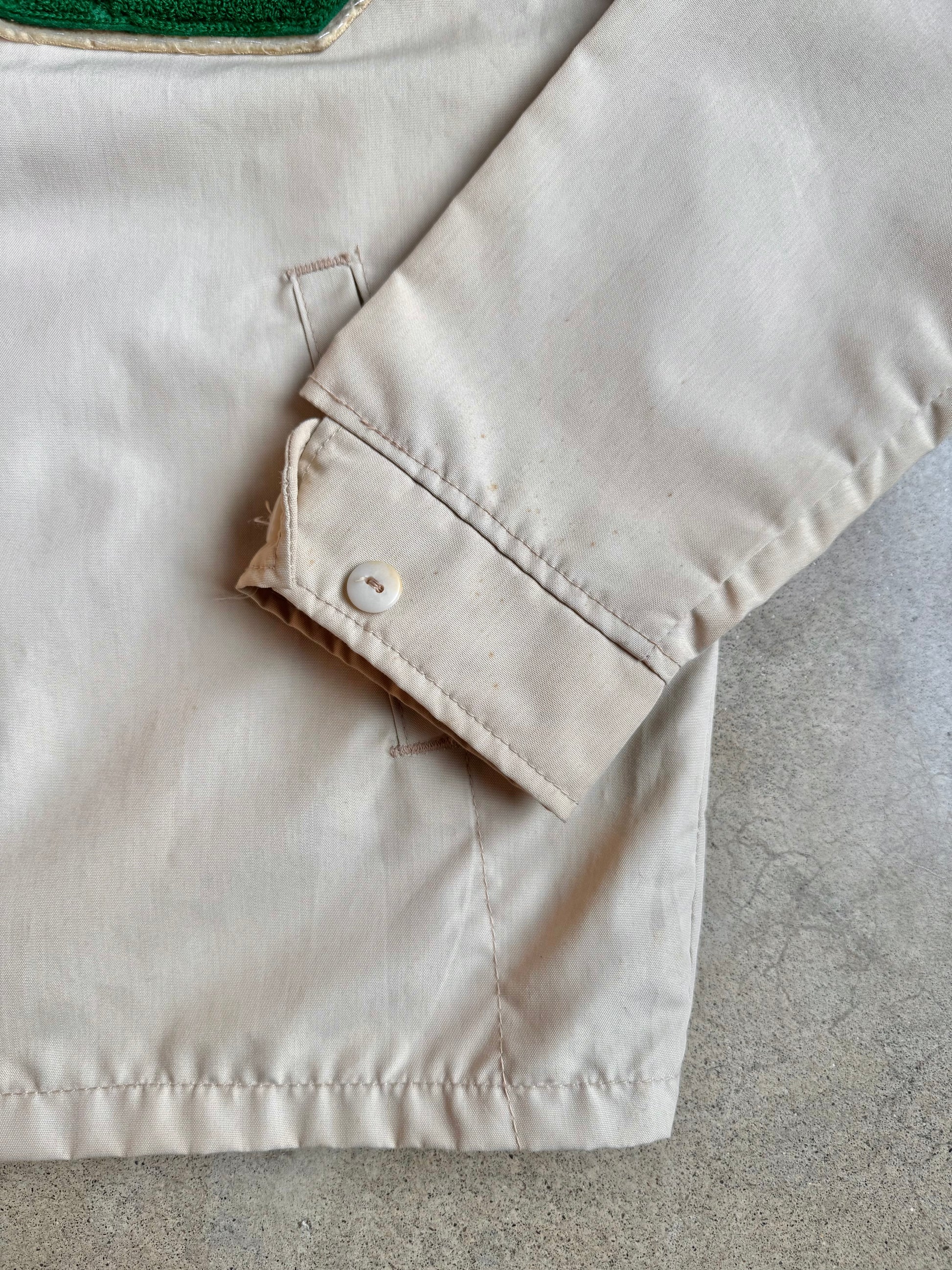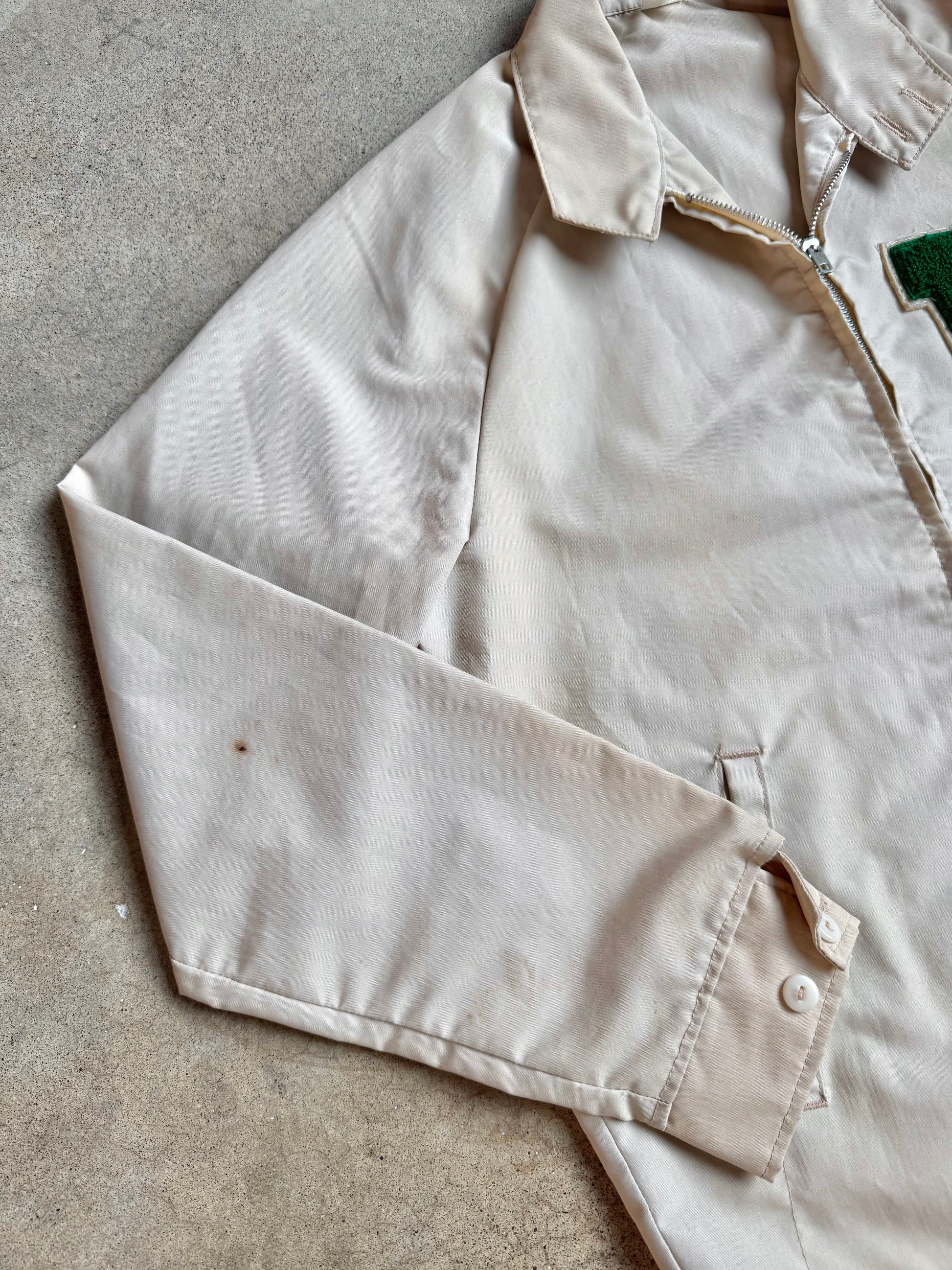 Vintage 1960s Beige Zip-Up Lightweight Jacket w/ “B” Varsity Letterman Patch.