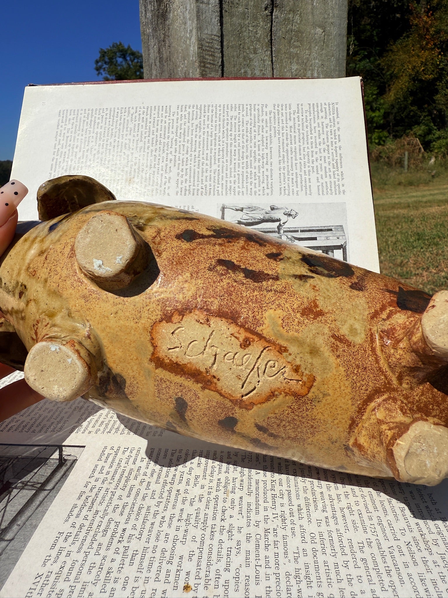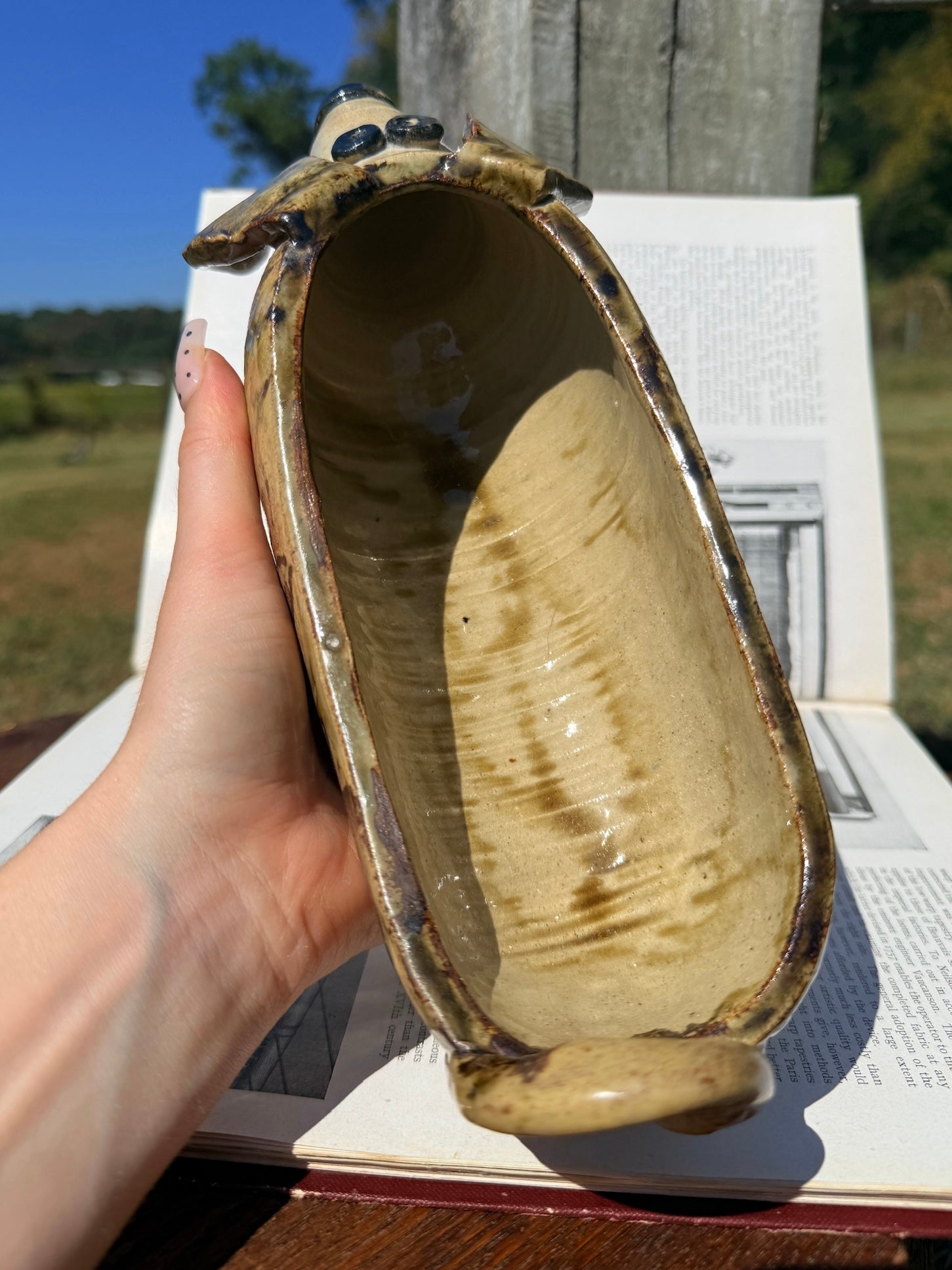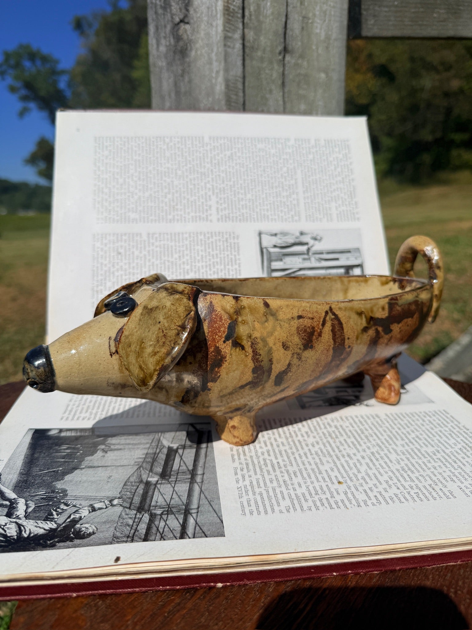 Handmade Signed Ceramic Pottery Dog Planter/Bowl