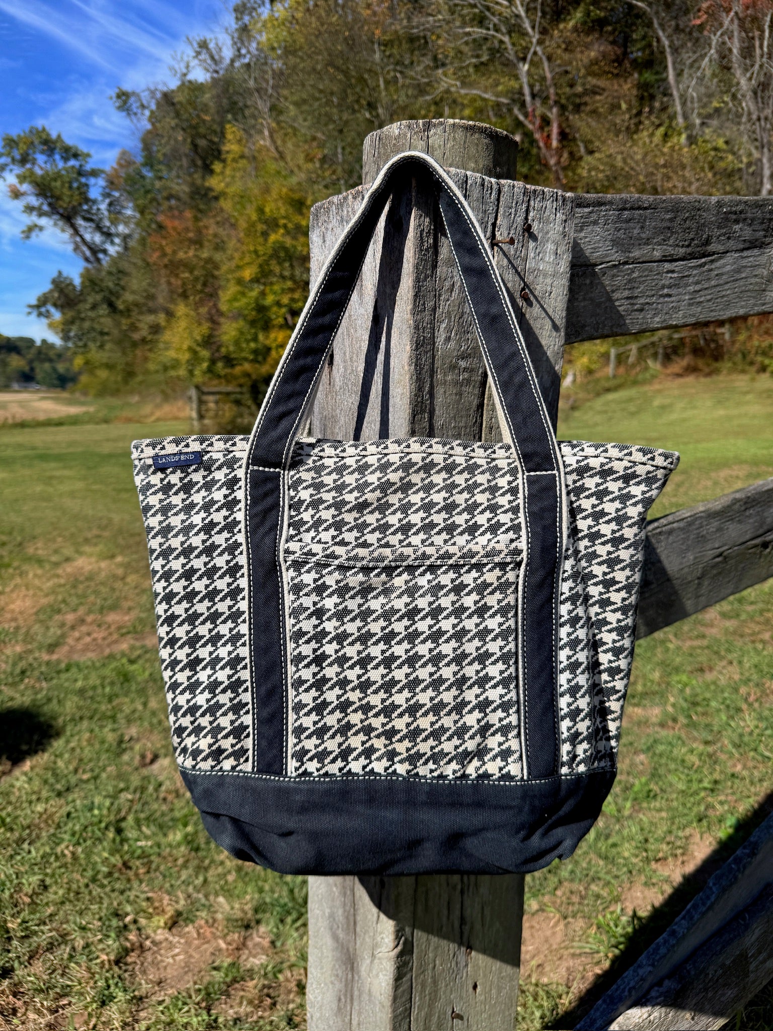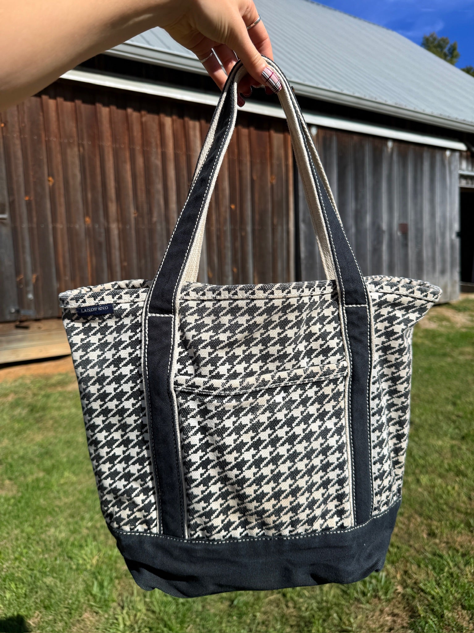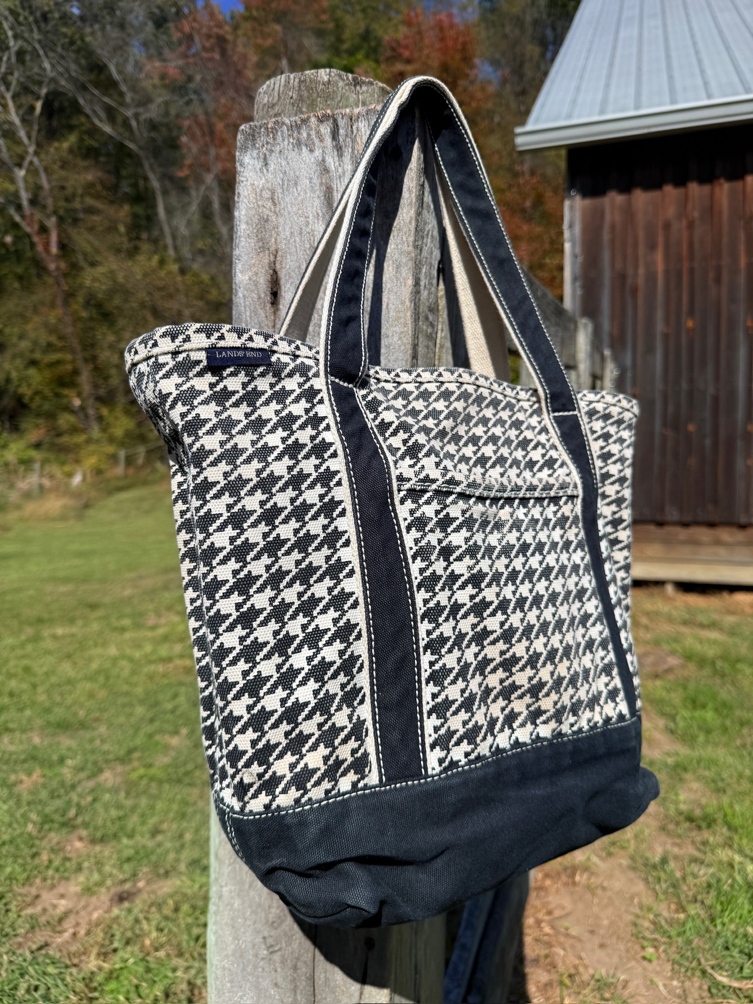 Lands’ End Black & White Houndstooth Canvas Tote Bag.