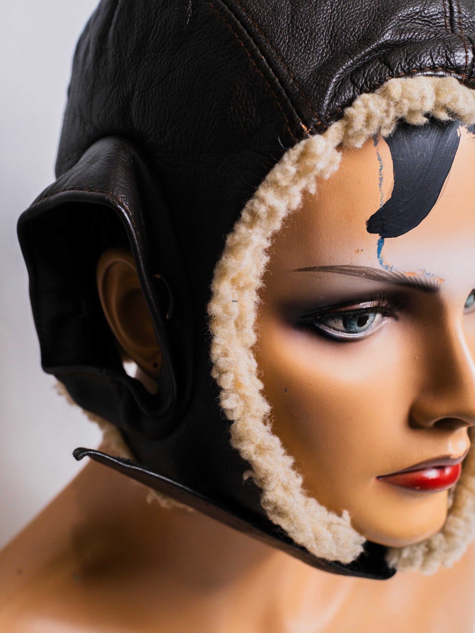Perrone Leather Aviation Sherpa-Lined Bomber Cap.